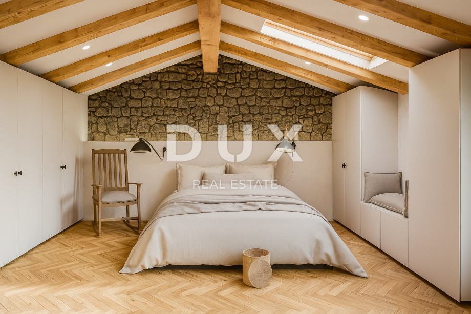- Adaptacija: Kuća je stručno renovirana zadržavajući tradicionalne elemente – kameni zidovi, drvene grede, originalne niše.