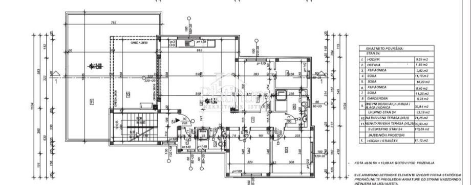 Apartman u izgradnji na drugom katu veličine 113,69 m2.