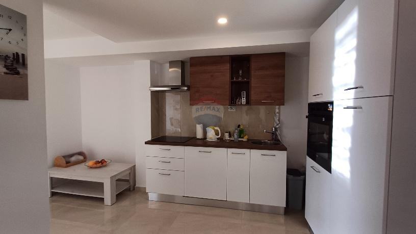 Stan je potpuno namješten sa zadnjom renovacijom i opremanjem u 2023 godini. Sastoji se od ulaznog dvorišta od 30ak m2 sa vlastitim roštiljem, manjom terasom od 10 m2, hodnika, kuhinje-blaogovaone, dnevnog boravka, kupaonice, jedne spavaće sobe i lijepe terase od 12m2 sa pogledom prema moru.