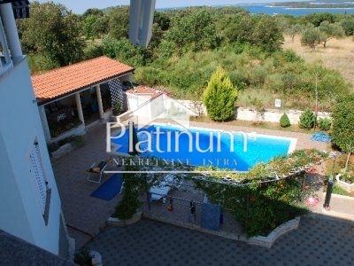 Prodaje se samostojeća kuća s pogledom na more i otočje Brijuni ukupne stambene površine 360 m2 raspoređene na tri stambene jedinice. U prizemlju je stan sa tri spavaće sobe, dnevnim boravkom sa kuhinjom i blagovaonom, dvije kupaone, otvorene i zatvorene terase. Na katu su stanovi od 60 m2 i 80 m2 koji se sastoje od dnevnog boravka i kuhinje s blagavaonom sa izlazom na terasu sa koje se pruža predivan pogled na more, spavaće sobe, dvije kupaone i hodnika. U prizemlju kuće je garaža sa podrumskim spremištem. Na okućnici od 740 m2 je smješten bazen sa sunčalištem pored kojeg je natkrivena i ostakljena terasa sa ljetnom kuhinjom i grilom. Nalazi se na jako lijepoj i mirnoj lokaciji udaljenoj od uređene plaže cca 700 m2.