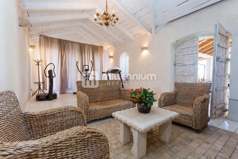 Na prekrasnoj okućnici je veliki grijani bazen, manji bazen za djecu, konoba s kaminom, ljetna kuhinja i park za djecu.