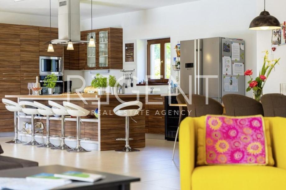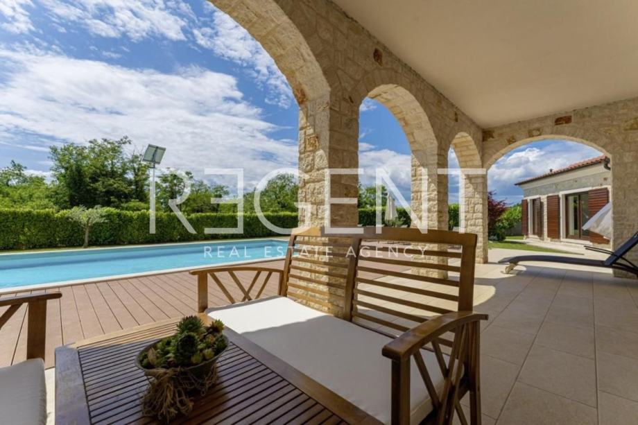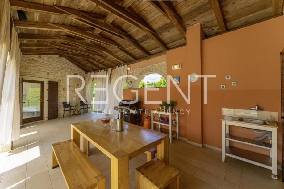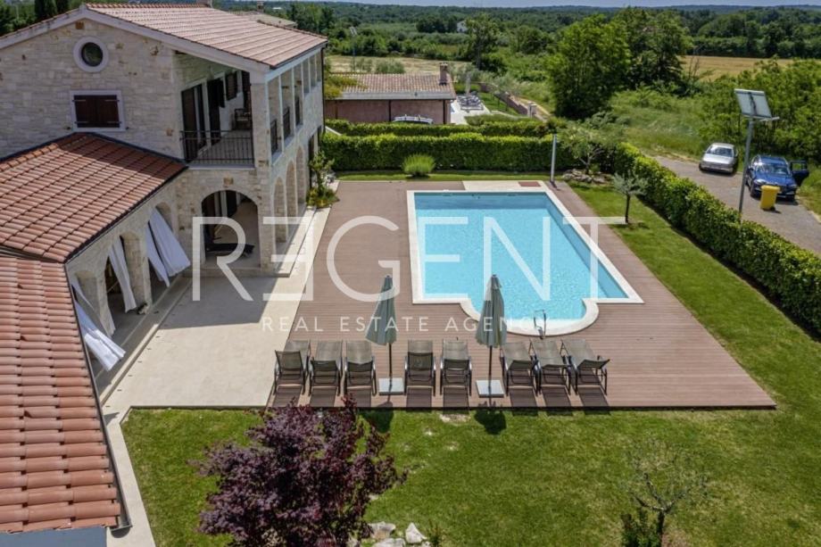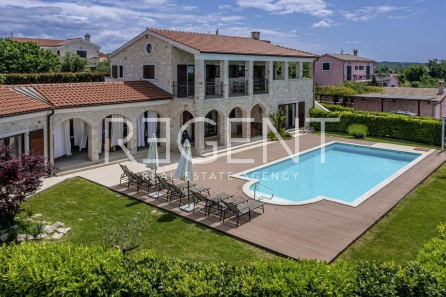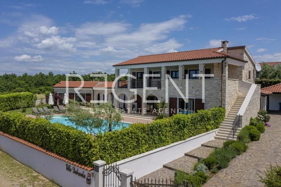 Lijepa prostrana obiteljska vila smještena je u malom selu u blizini Svetog Lovreča i Limskog kanala ali ipak ne predaleko od popularnog Poreča i Rovinja. Autentična kamena vila ukupne je stambene površine 280 m2 na zemljištu površine 1364 m2.Vila je građena u rustikalnom stilu s autohtonim Istarskim kamenom, okružena zelenilom sastoji se od prizemlja i prvog kata.U prizemlju je smješten veliki dnevni boravak s kuhinjom i blagovaonom ,toaletom i spremištem te u odvojenom dijelu vile i spavaća soba sa kupaonicom. Izlaskom u vanjski dio nailazimo na održavanu okućnicu sa bazenom i ljetnom kuhinjom, prostorom koji u toplim ljetnim danima garantira ugodu boravka na otvorenom.Na katu se nalaze dvije velike spavaće sobe sa vlastitim kupaonicama koje također imaju izlaz na prostranu terasu s koje se pruža lijepi pogled.Vila je građena od vrhunskih kvalitetnih materijala i naša je topla preporuka za investiciju.Kontaktirajte nas za više informacija!Za više informacija, kontaktirajte našeg agenta na brojeve telefona:
