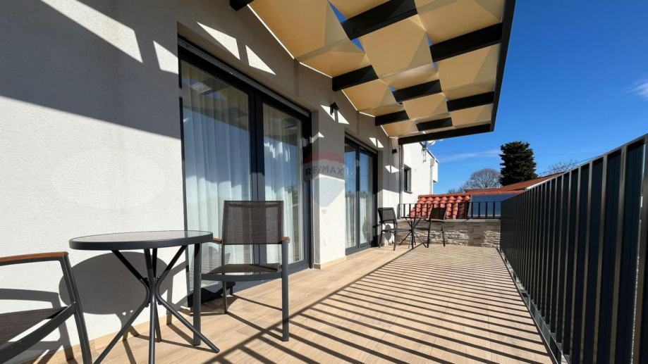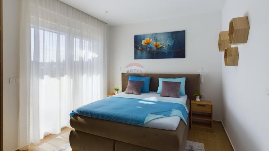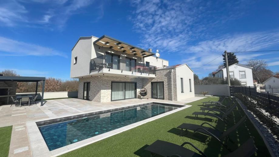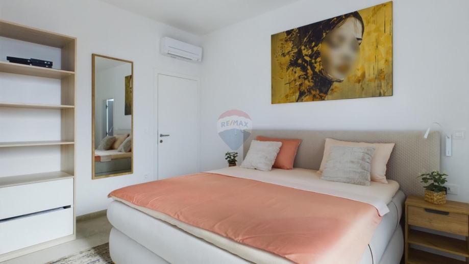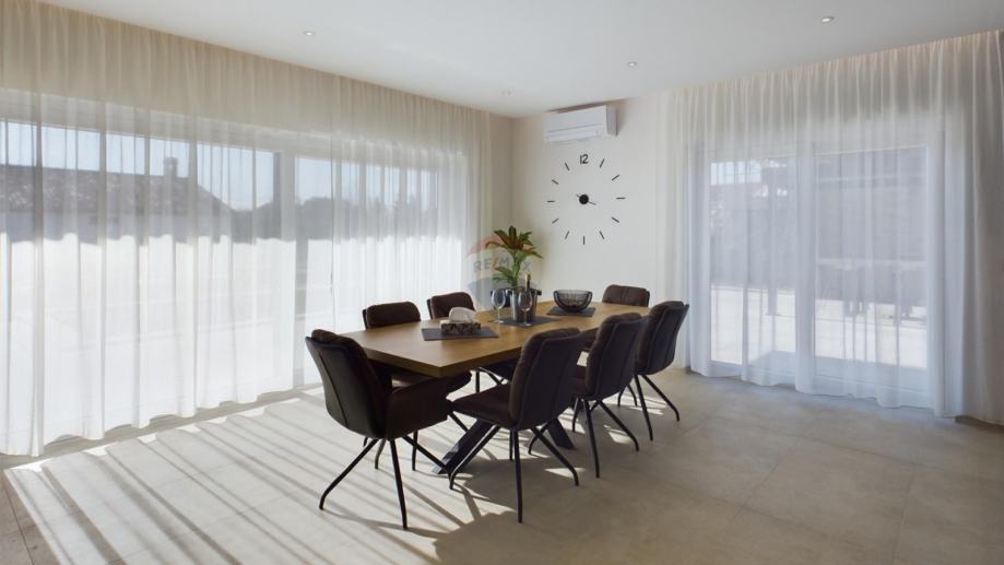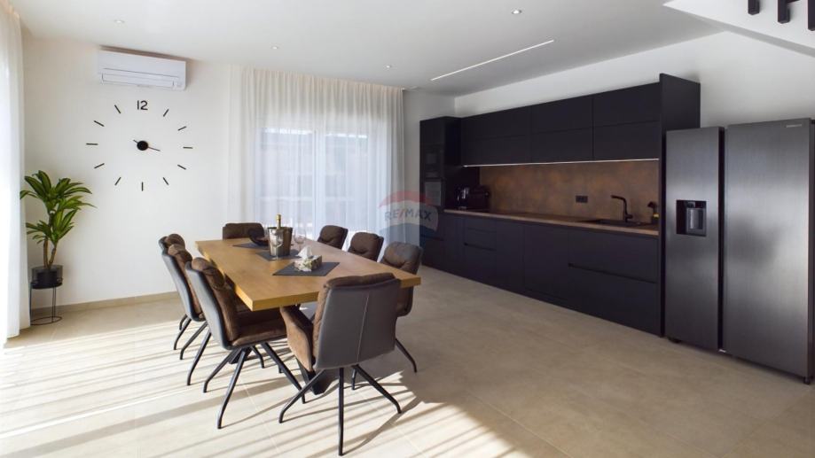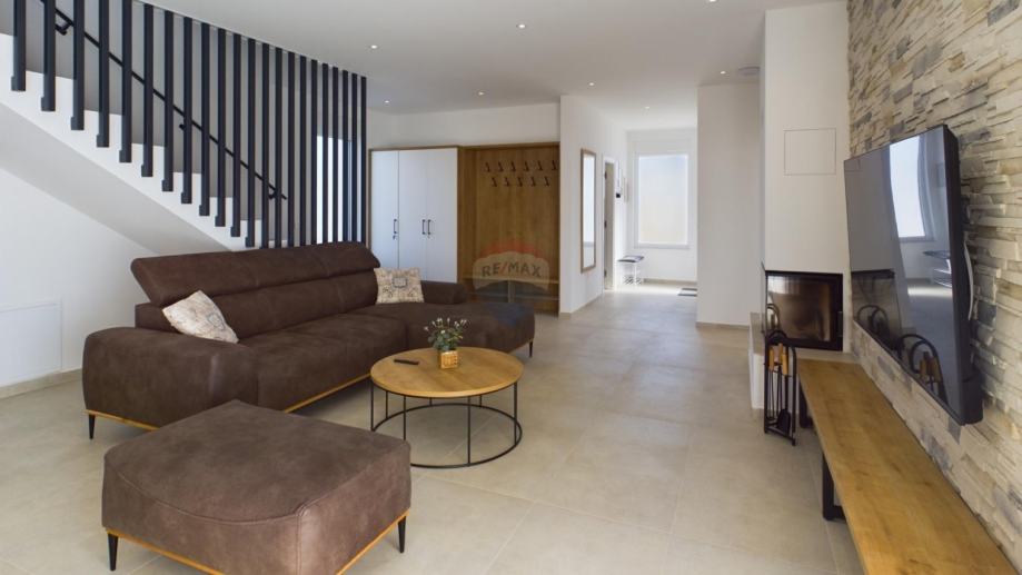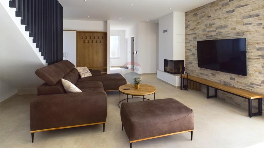 Kuća je opremljena podnim grijanjem na dizalicu topline, klimama u svakoj prostoriji, alarmom, video nadzorom, solarnim grijanjem vode te solarnom elektranom od 7,4 kW.