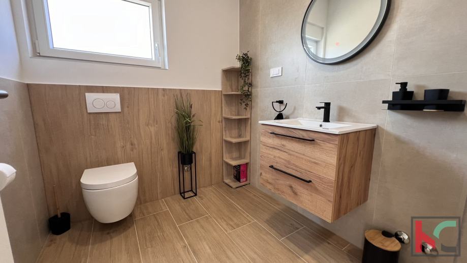 Smještena na rubu građevinske zone u mirnom mjestu, vila je udaljena samo 15 km od grada Poreča i njegovih predivnih plaža. Vila je potpuno namještena visokokvalitetnim namještajem. Svi potrebni sadržaji za život, poput škole, vrtića, trgovina, restorana i pošte, nalaze se na samo nekoliko minuta vožnje automobilom.