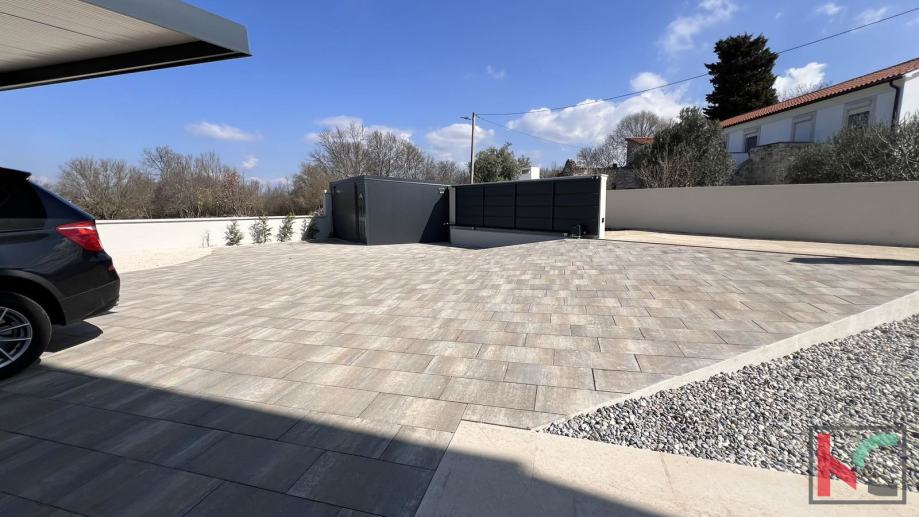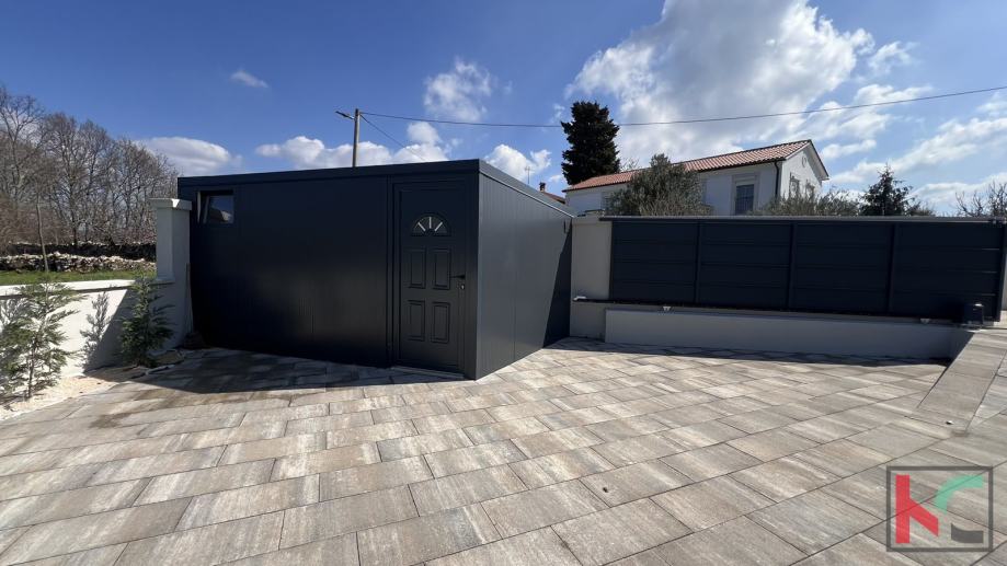 Vila raspolaže s ukupno četiri parking mjesta, od kojih su dva natkrivena. U dvorištu se nalazi vanjska ostava, a cijelo dvorište je potpuno ograđeno s dva ulaza, od kojih je jedan s električnim vratima.