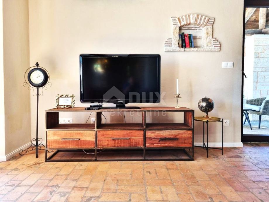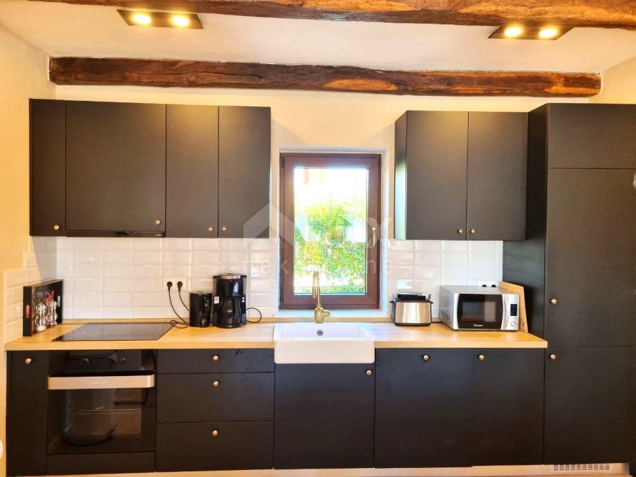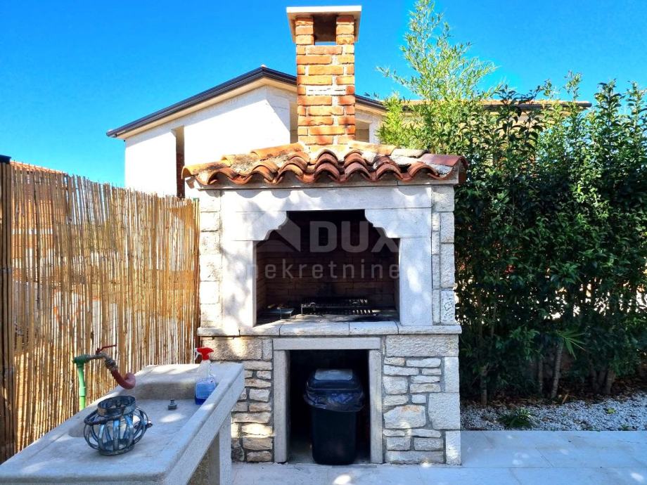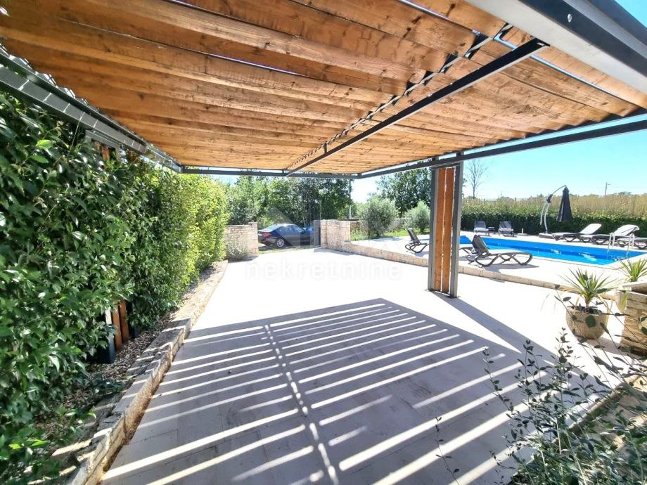 Na lijepoj okućnici smjestio se je bazen od 30m2 i ljetna kuhinja s prekrasnim kaminom te natkrivena terasa na kojoj možete uživati u prekrasnim danima kojima Istra obiluje.