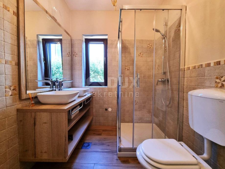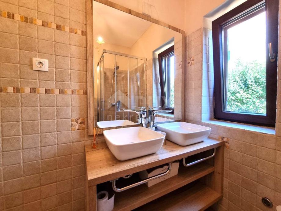 Dok se penjete na prvi kat prekrasnim stubištem, dočekat će vas prostrani hodnik, kupaona i tri elegantno uređene spavaće sobe, od kojih jedna ima vlastitu kupaonu. Ove sobe vam pružaju privatnost i udobnost, a jedna spavaća soba ima izlaz na balkon koji vam omogućuje da uživate u prekrasnim pogledima na okolnu prirodu, stvarajući jedinstvenu atmosferu.