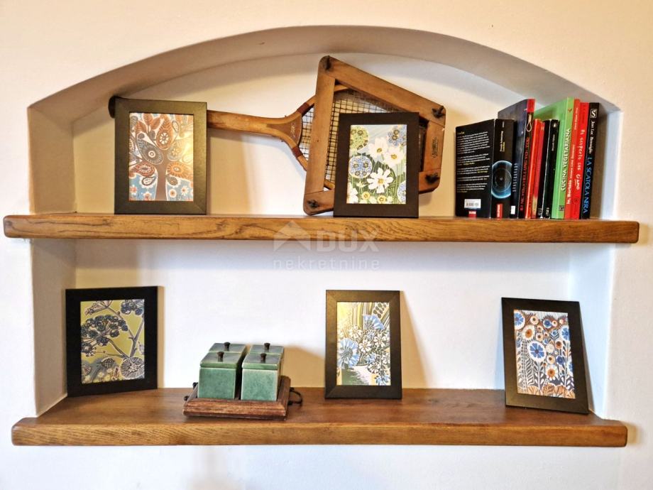 Kuća je savršen spoj tradicionalnog i modernog; građena je kombinacijom cigle i kamena koji poštuje autohtonost istarskih kamenih kuća dok je interijer prilagođen suvremenom načinu života, uređen s puno pažnje, a poseban štih i toplinu daje mu kombinacija kamena i drva.