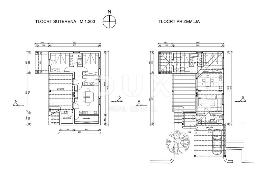 Kuća se proteže kroz dvije etaže a sastoji se od dvije stambene jedinice funkcionalnog tlocrta.