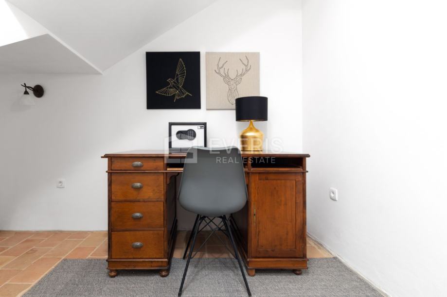 Kuća je izgrađena u tradicionalnom istarskom stilu, okružena prirodnim pejzažima i nudi idealno mjesto za opuštanje i uživanje u miru i tišini.