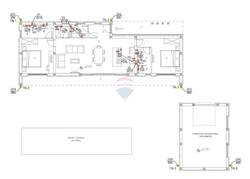 Kuća ima još wc u ulaznom hodniku i odvojeno spremište.