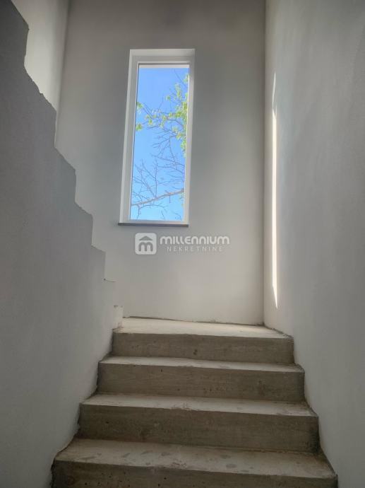 Kuća je potpuno ograđena zidom, što osigurava mir i intimu. Na okućnici se smjestio prekrasan bazen površine 28m², idealno mjesto za opuštanje tijekom toplih ljetnih dana. Uz kuću se nalazi i garaža.