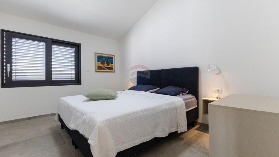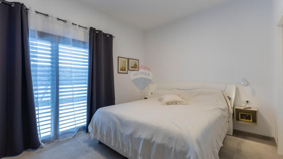 Svega 15 minuta vožnje od mora u mirnom i zelenom okruženju Općine Svetvinčenat smjestila se moderna katnica s bazenom. Stambena površina od 150 m2 proteže se se kroz dvije etaže sa velikom i uređenom okućnicom, te parkingom za 2 automobila. Prizemlje se sastoji od spavaće sobe s vlastitom kupaonom, malim wc-om , ulaznim hodnikom te velikim dnevnim boravkom s kuhinjom te blagavaonom.