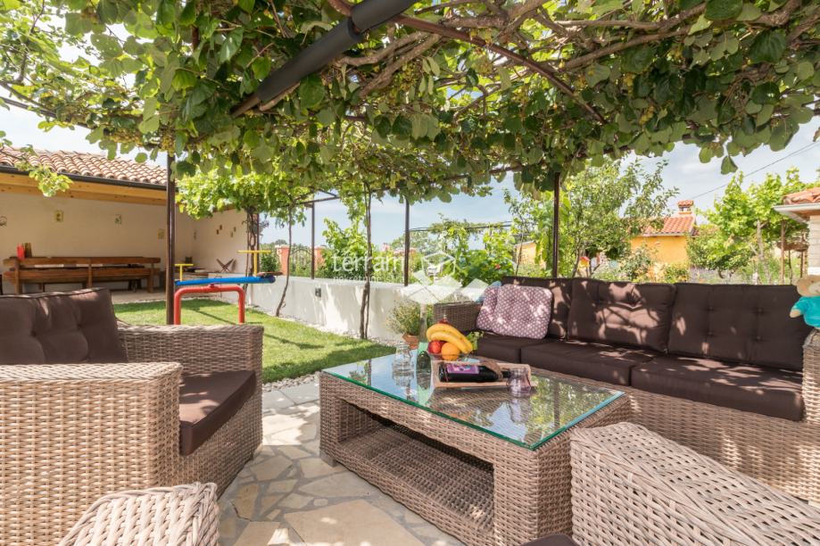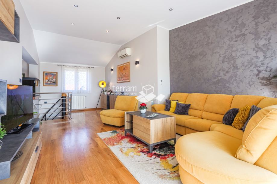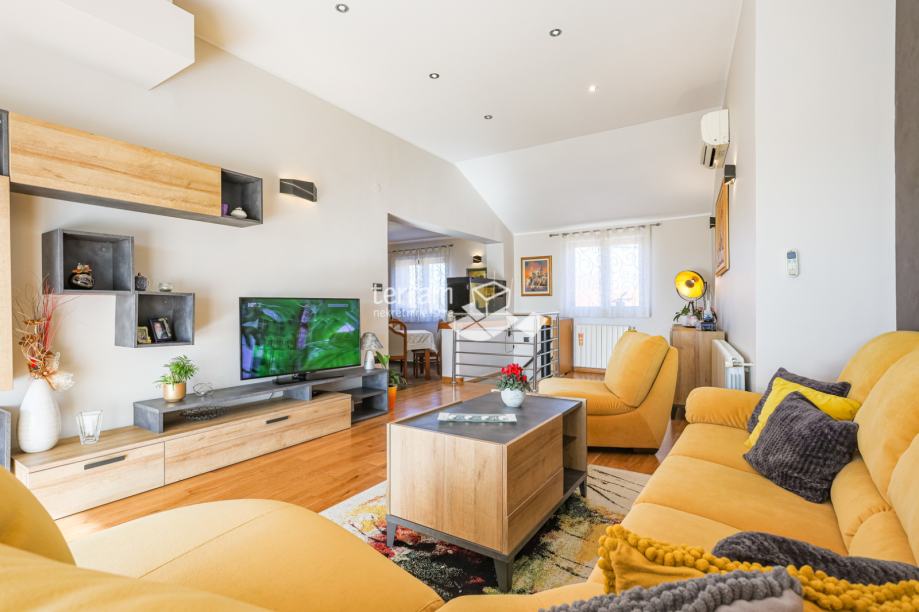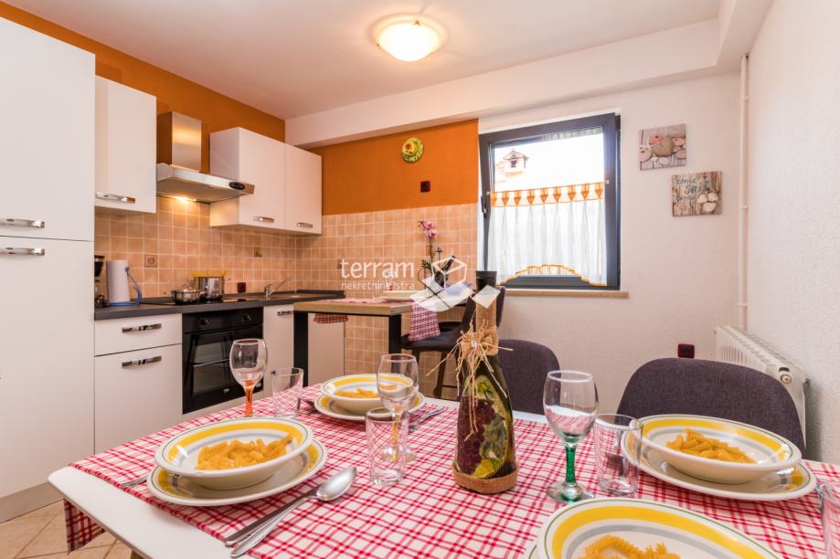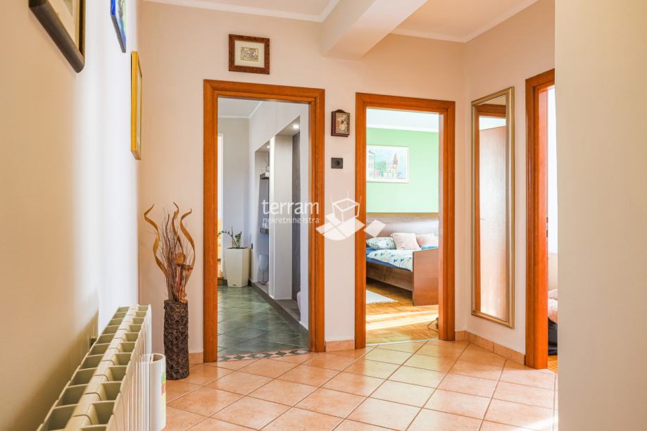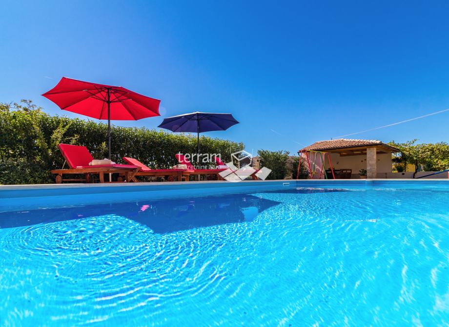 Glavna kuća sastoji se od prizemlja i prvog kata ukupne veličine 246m2. Na svakoj etaži nalazi se po jedan stan. Sastoje se od: tri spavaće sobe, kuhinja s blagavaonom, dnevnog boravka, kupaonice, terase s izlazom na bazen. Stan na prvom katu identičan je prizemlju s time da ima dvije kupaonice. Kuće su kompletno namještene te se takve i prodaju. Plinsko centralno grijanje, klimatizirano. Kompletna je okućnica uređena i ograđena te nudi potpunu privatnost. U sklopu kuće nalazi se i zemljište od 680m2 na kojem se može napraviti treći objekat.