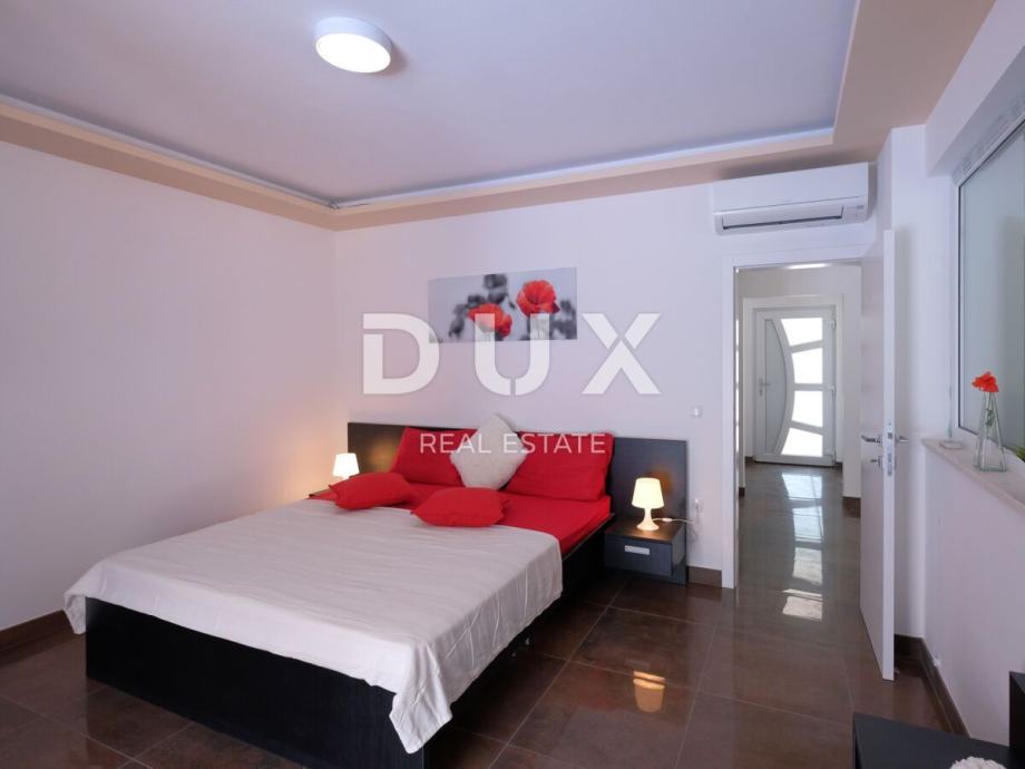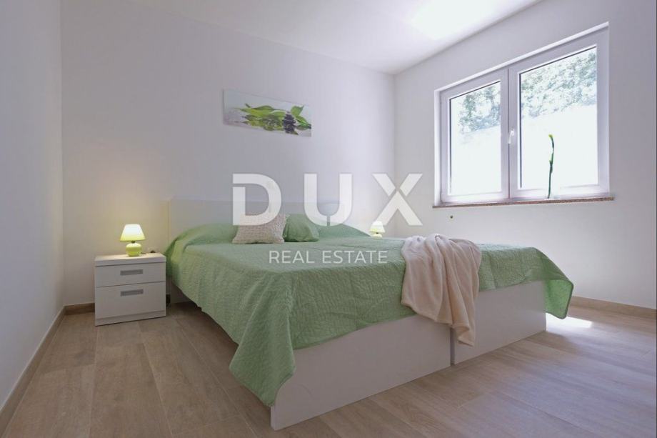 Ulaskom u kuću dočeka nas predivan otvoreni prostor u kojemu su se smjestili prostrana i moderno opremljena kuhinja, blagovaona i prostrani dnevni boravak. Iz dnevnog boravka proteže se izlaz kroz staklenu stijenku prema natkrivenoj terasi i pogled oprema bazenu i zelenilu. Jednako tako na prizemnoj etaži smjestila se jedna od spavaćih soba te kupatilo.