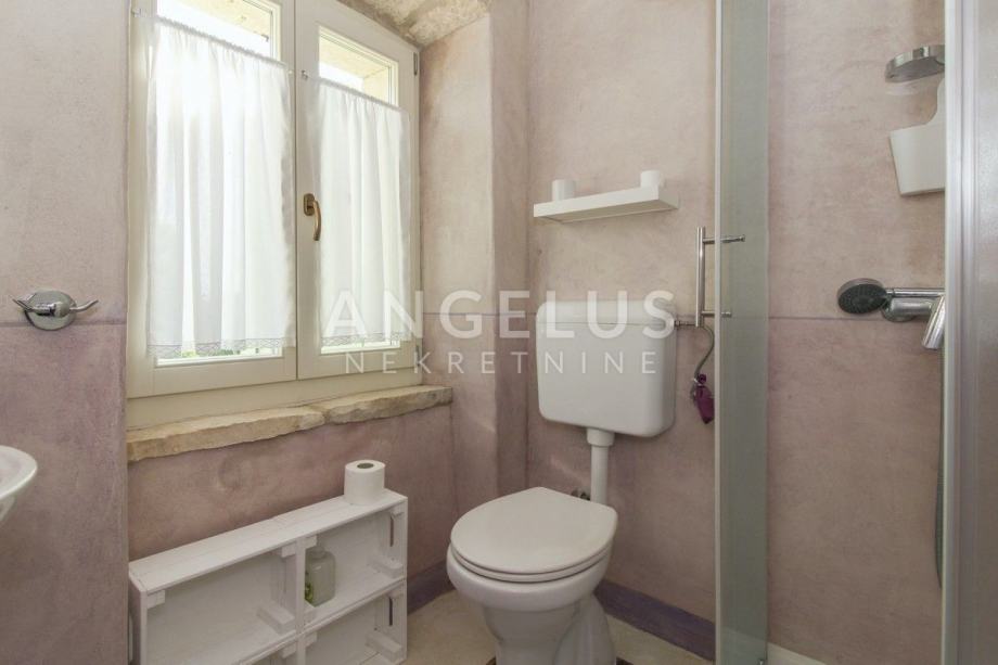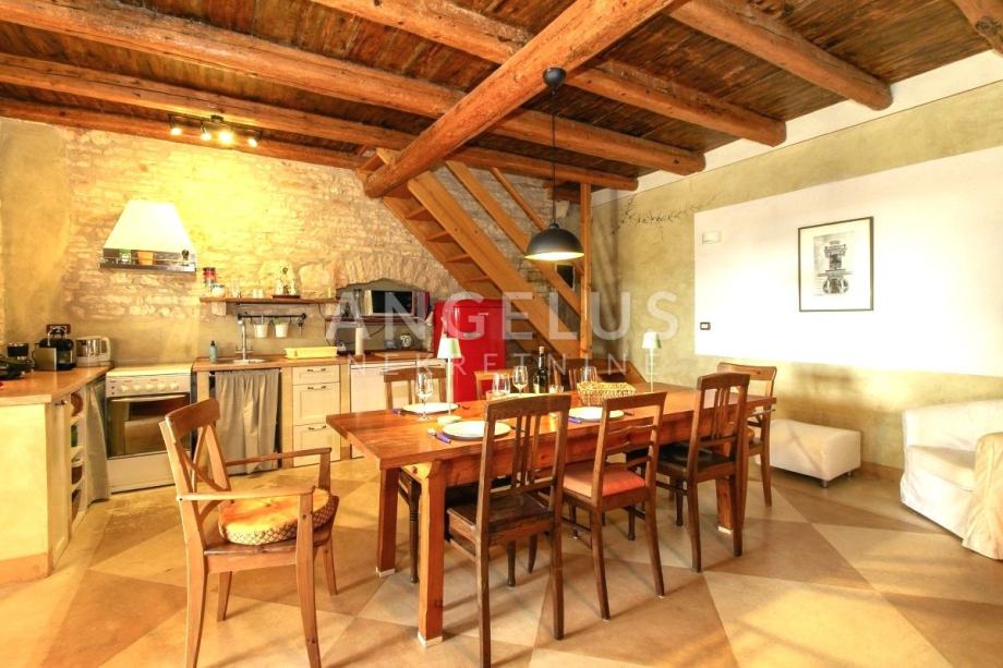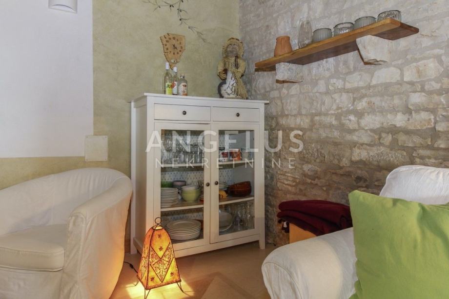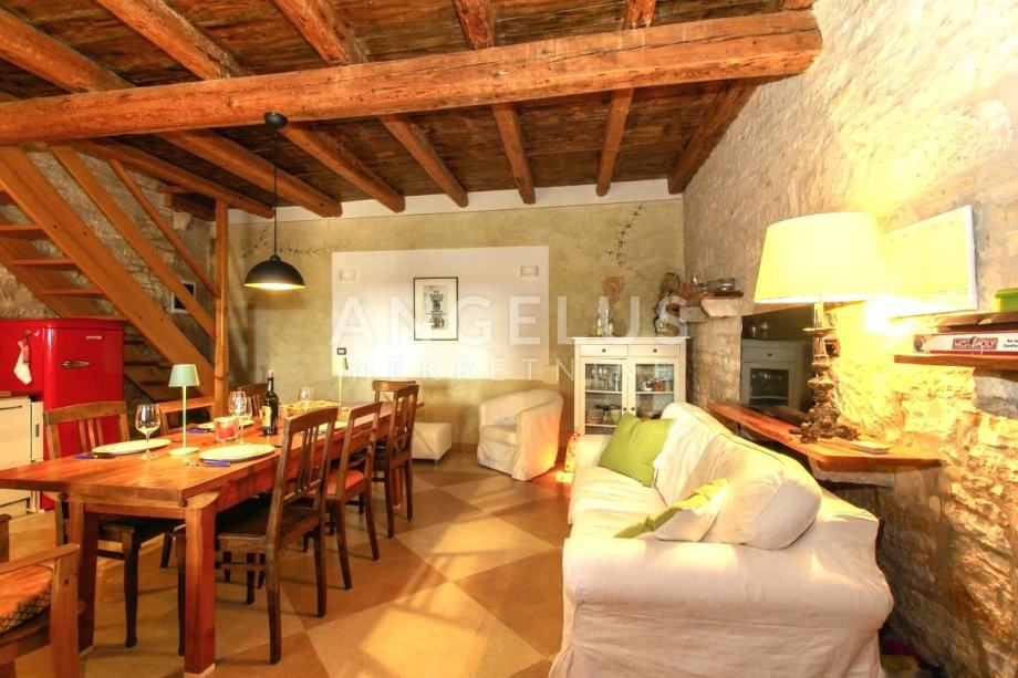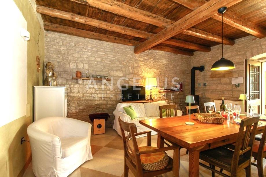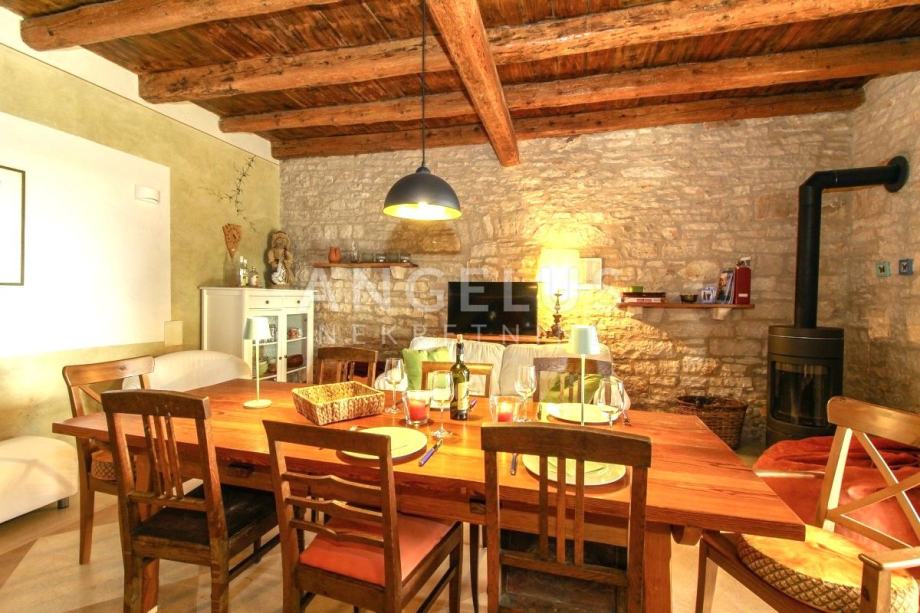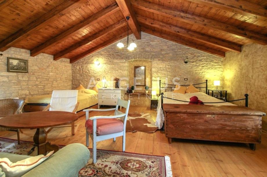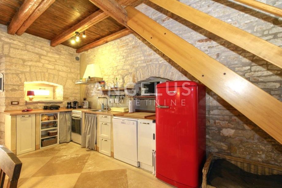 OPIS: Prodaje se tradicionalna kamena kuća koja se nalazi u malenom selu središnje Istre, u sklopu općine Svetvinčenat koje je još uvijek očuvalo svoj mir i neotkrivenost. U ovom selu nema puno kuća, a niti stanovnika. Kod uređenja kuće se vodilo računa o autohtonosti, namještena je sa puno ljubavi i pažnje te je u potpunosti opremljena i spremna za useljenje. Sastoji se od velikog dnevnog boravka, kuhinje i blagovaonice u konceptu otvorenog prostora u prizemlju iz kojeg se drvenim stepenicama pristupa katu gdje se nalaze dvije spavaće sobe i kupaonica sa tušem. Obje spavaće sobe su opremljene bračnim krevetom i ormarom. Sa prvog kata se pristupa drugom katu (potkrovlju) koje je u potpunosti otvoreno te namješteno sa bračnim krevetom, jednim krevetom za jednu osobu i mjestom za opuštanje. Na gornjem katu također postoji kupaonica sa tušem.