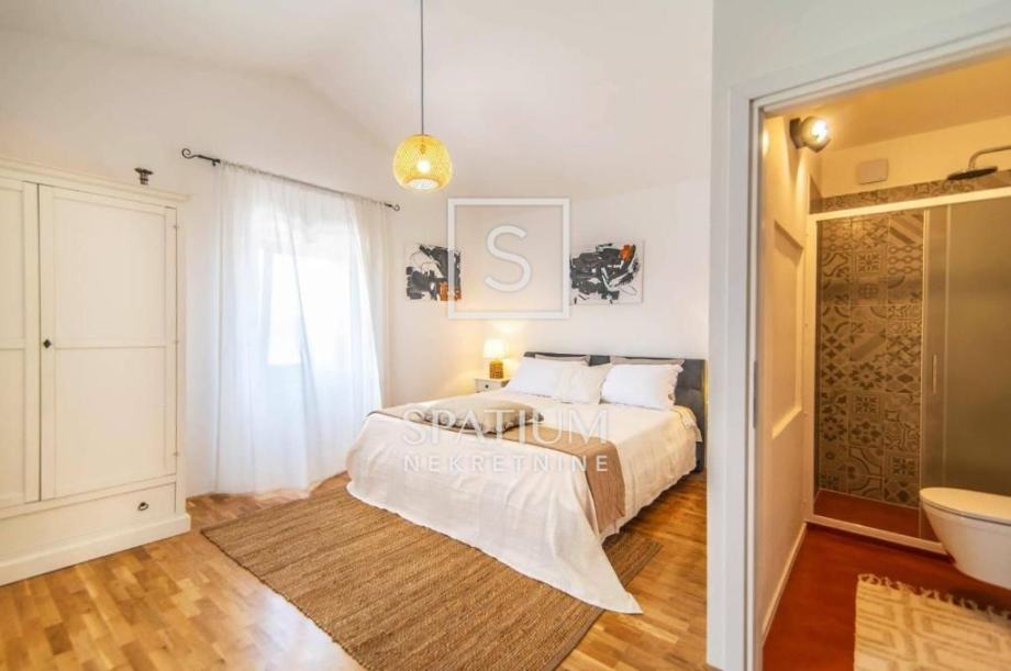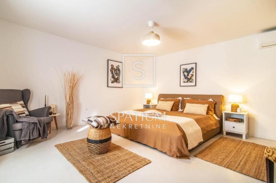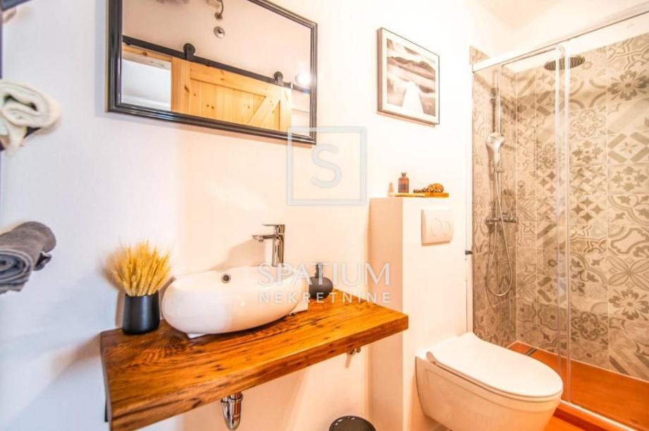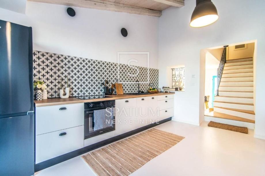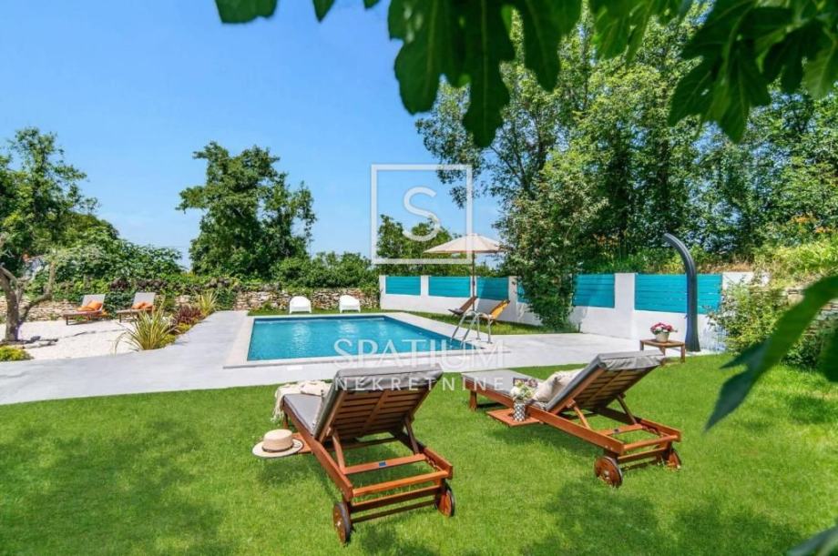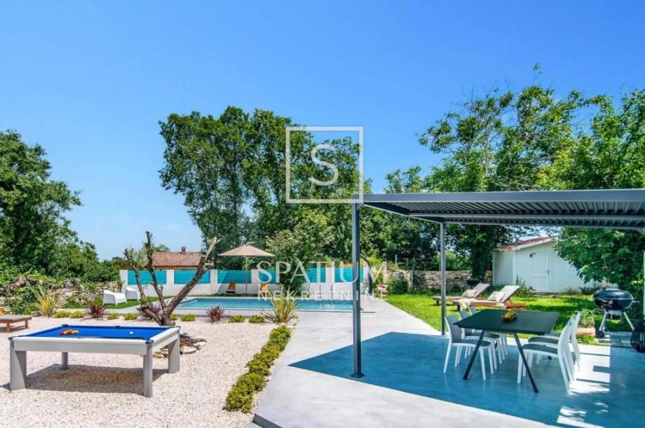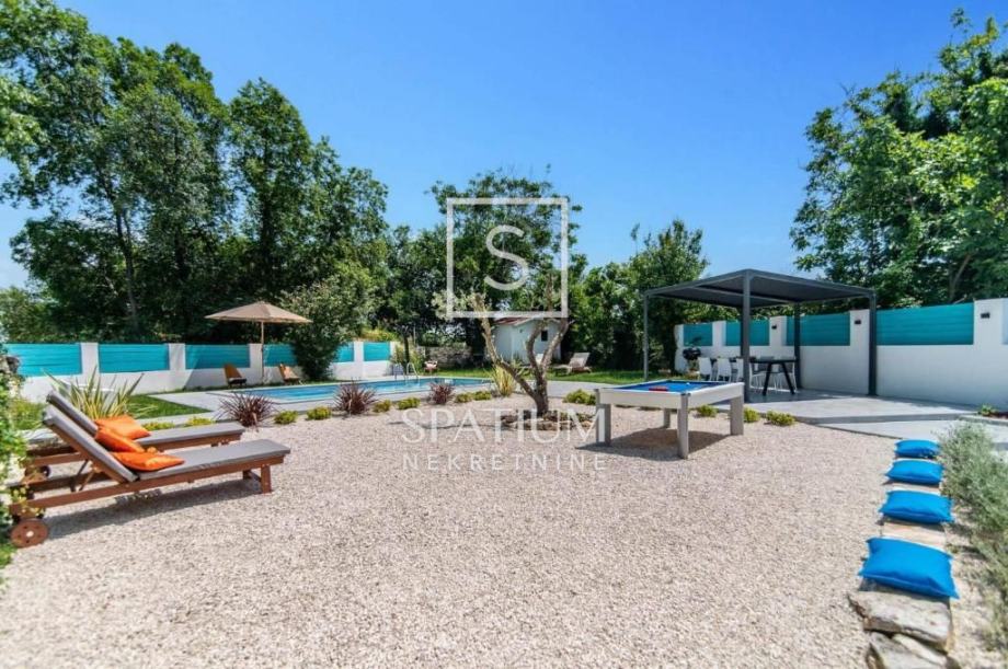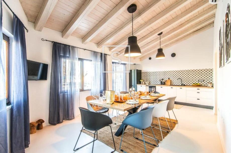 BUTKOVIĆI, SVETVINČENAT, u ponudu smo dobili potpuno renoviranu istarsku kuću površine 117 m2, smještenu nedaleko grada. Sastoji se od moderno uređene kuhinje, prostrane blagovaonice, udobnog dnevnog boravka, tri elegantne spavaće sobe, a svaka sadrži tri kupaonice. Sobe su opremljene klima uređajima i podnim grijanjem za maksimalnu udobnost. Na okućnici se nalazi bazen površine 30 m2 s nadstrešnicom od 12 m2, idealnom za opuštanje. Iza kuće prostire se dvorište od 500 m2, koje uključuje vrtnu kućicu. Objekt pruža sve što je potrebno za miran i udoban život, a ujedno je i odlična prilika za bavljenje turističkom djelatnošću s obzirom na već uhodani biznis u srcu Istre.