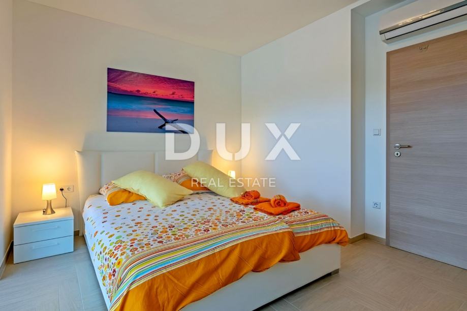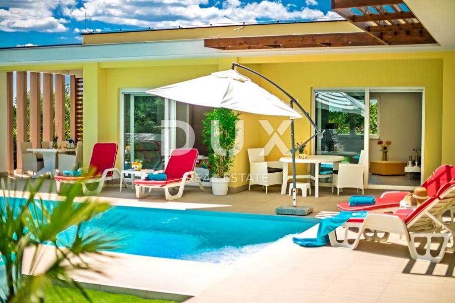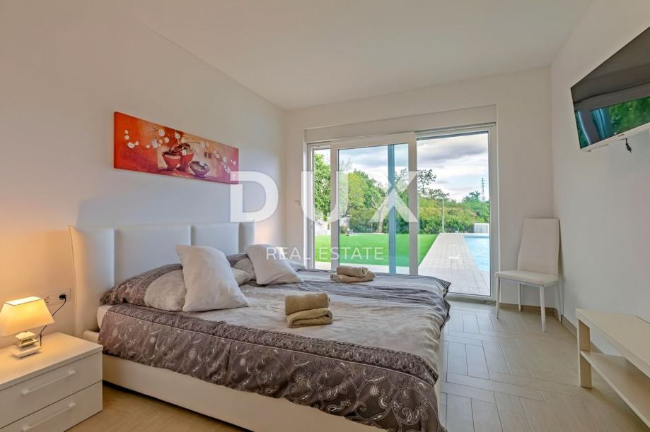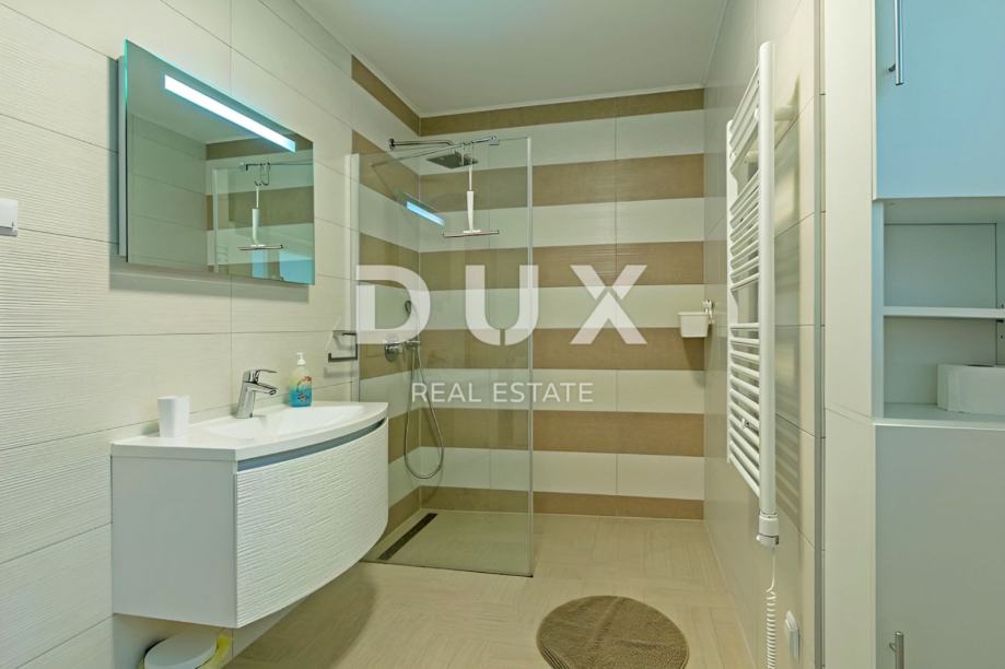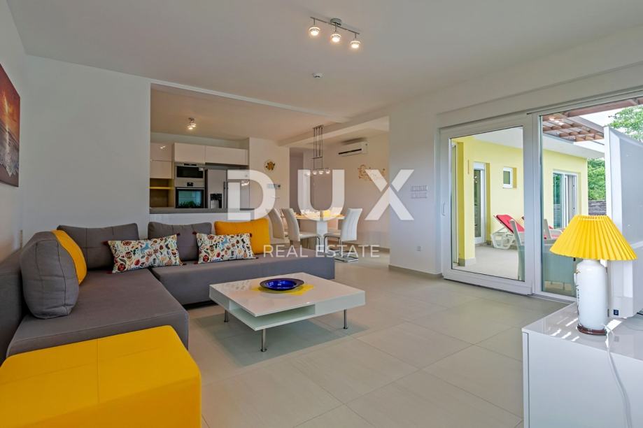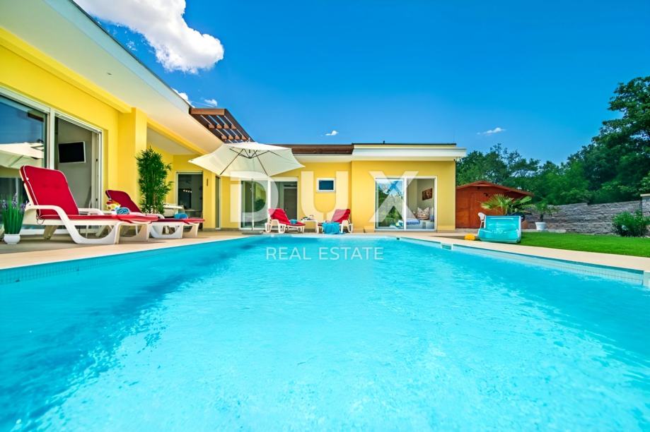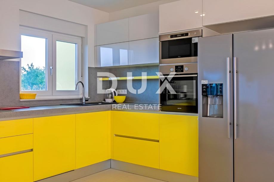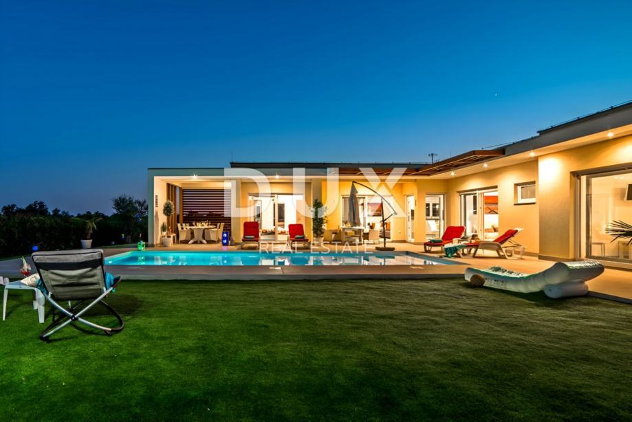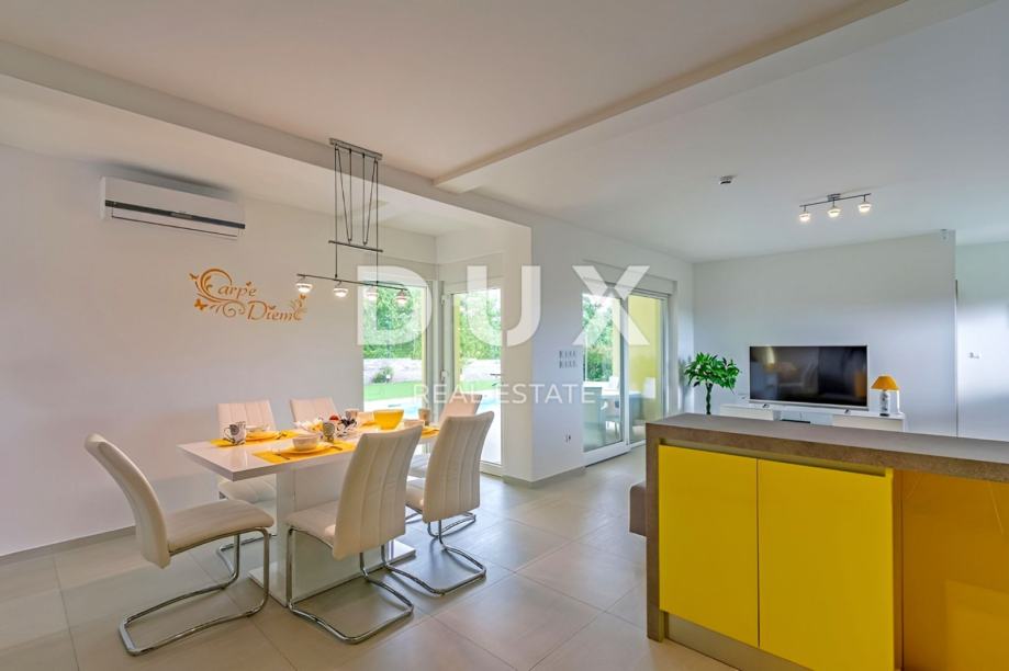 Potpuno namještena i kvalitetno opremljena prizemnica netto površine 153 m² sastoji se od otvorenog koncepta u kojem su ujedinjeni dnevni boravak, blagovaonica i kuhinja s izlazom na natkrivenu terasu, tri spavaće sobe s vlastitim kupaonicama, prostrane ostave i kupaonice. Svaka prostorija je svijetla, prozračna i puna sunčeve svijetlosti te svaka prostorija ima direktan izlaz u dvorište.