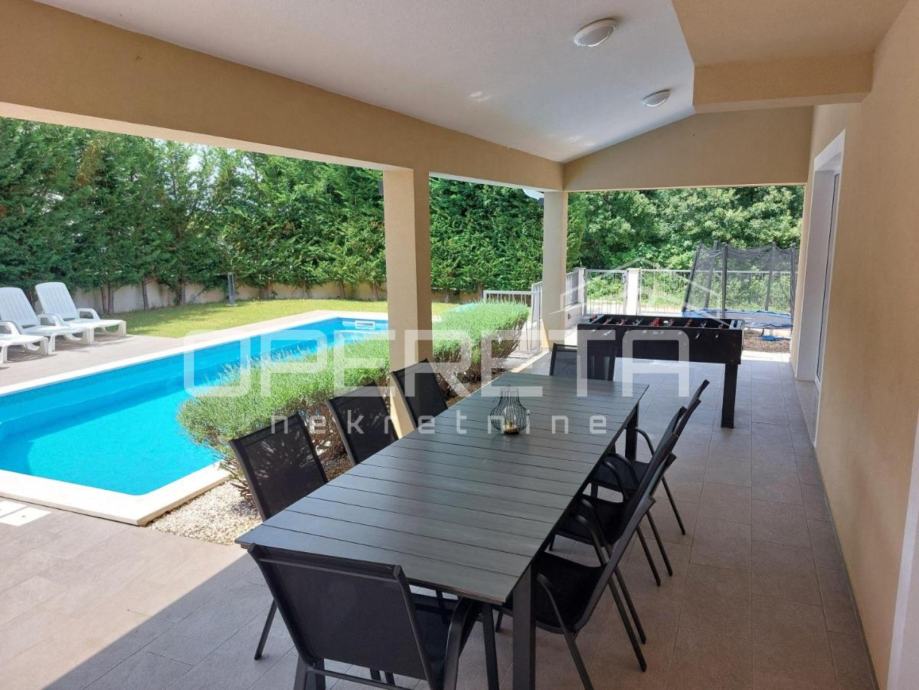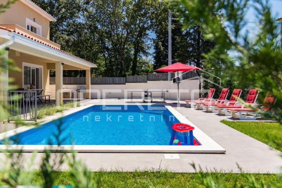 Na intimnoj okućnici nalazi se bazen od 36 m2 sa sunčalištem. Uz ogradu se nalazi visoka živa ograda - čempresi, koji pružaju potpunu privatnost za uživanje i odmor.