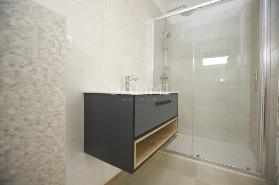 U dvorištu površine 450m2 smjestio se je bazen obložen keramikom, parking za 2 automobila.