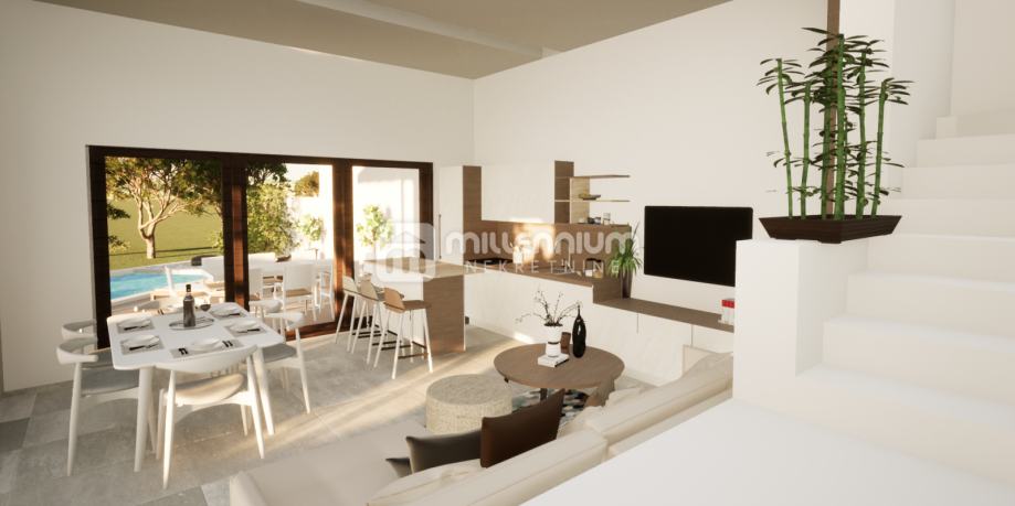 Kuća je ukupne površine 143.6m2, a bazen ima 26m2.