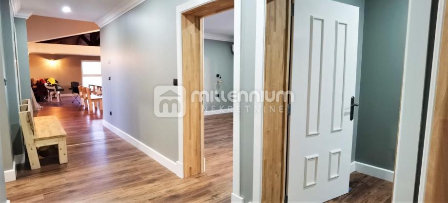 Sastoji se od dnevnog boravka, blagovaonice i kuhinje u otvorenom prostoru, 3 spavaće sobe, 3 kupaonice, predprostora, hodnika i dva spremišta.