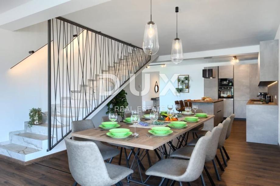 Površine 272 m2 raspoređenih kroz prizemlje i prvi kat. Prizemlje kuće čini otvoreni prostor koji uključuje prostrani dnevni boravak, opremljenu kuhinju i blagovaonicu s dovoljno mjesta za deset osoba.