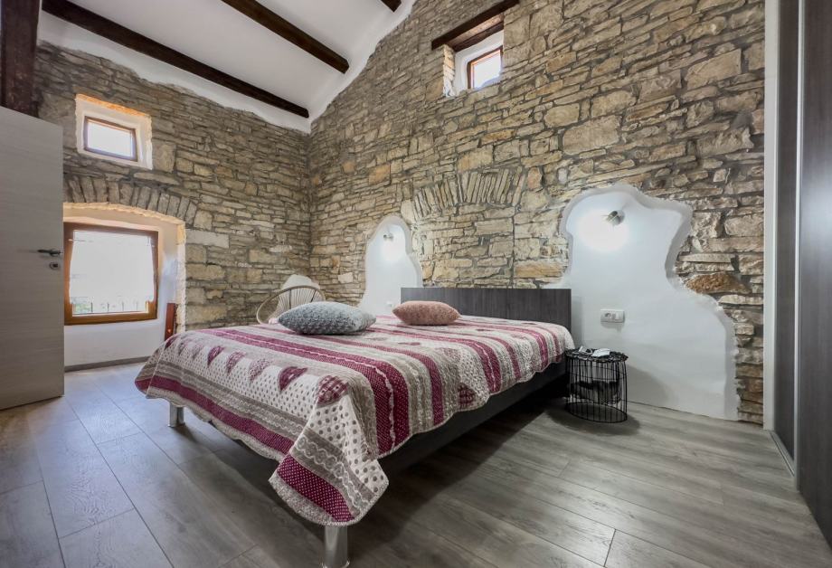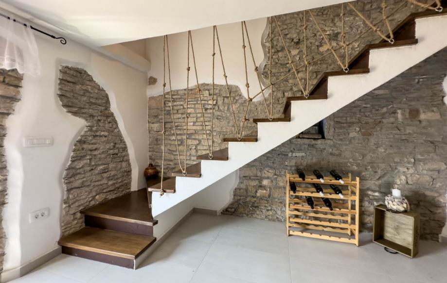 Kuća je potpuno renovirana te su prilikom renovacije korišteni kamen i drvo, poštujući tako tradicionalni istarski štih i baštinu. Vanjske grilje su drvene, a prozori su PVC.