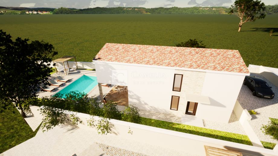 Posredujemo u prodaji izuzetne luksuzne kuće u izgradnji u okolici Svetvinčenta trenutno jednom od najtraženijih područja u Istri.
