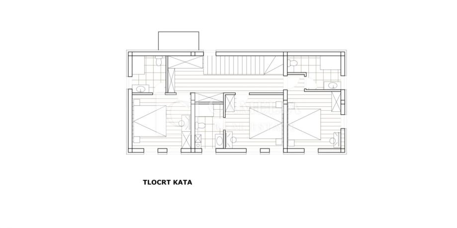 Prizemljem dominira dnevni boravak sa kuhinjom i blagovaonom i izlazom na natkrivenu terasu te jedna spavaća soba i jedna kupaona dok se na prvom katu nalaze još 3 spavaće sobe od kojih svaka soba ima svoju kupaonu.