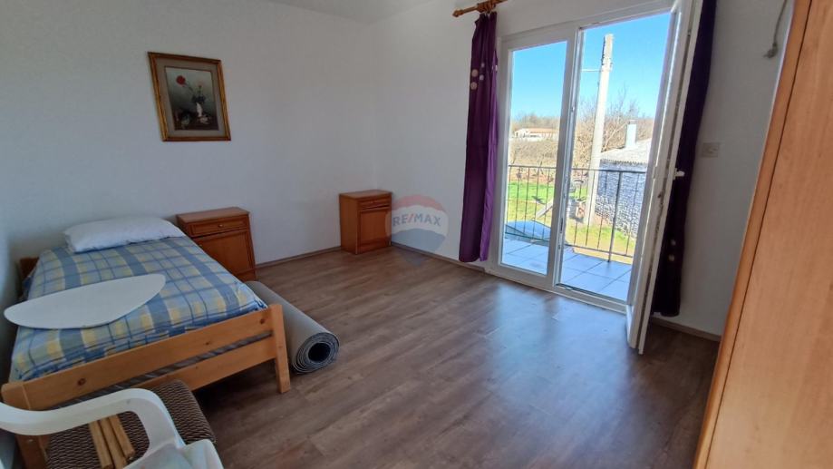 Kuća ima oko 1000 metara okućnice, zadnja je u selu i okružena zelenilom.
