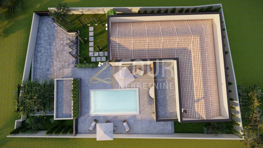 U mirnom istarskom mjestu nedaleko Svetvinčenta, prodaje se moderna prizemnica s bazenom i prekrasnim pogledom na more. Kuća je projektirana kao kvalitetna novogradnja čiji se završetak očekuje 2025./2026., a trenutačno je izvedeno oko 70% radova te se prodaje u postojećem stanju.