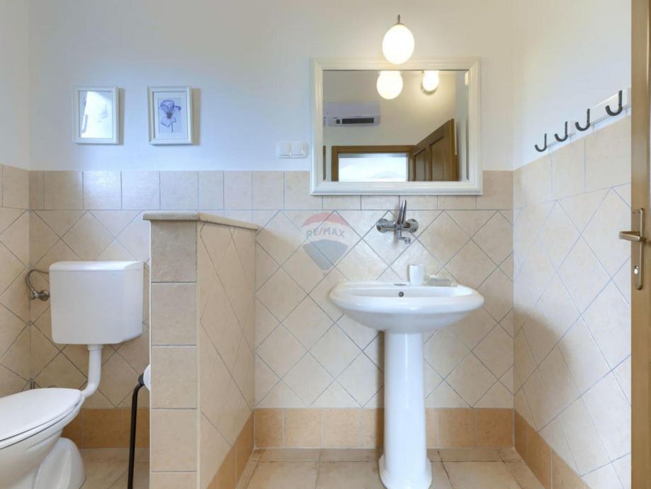 U prizemlju je i jedna spavaća soba sa vlastitom kupaonicom i izlazom na terasu.