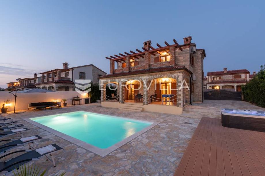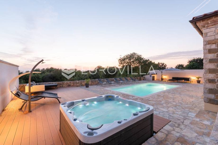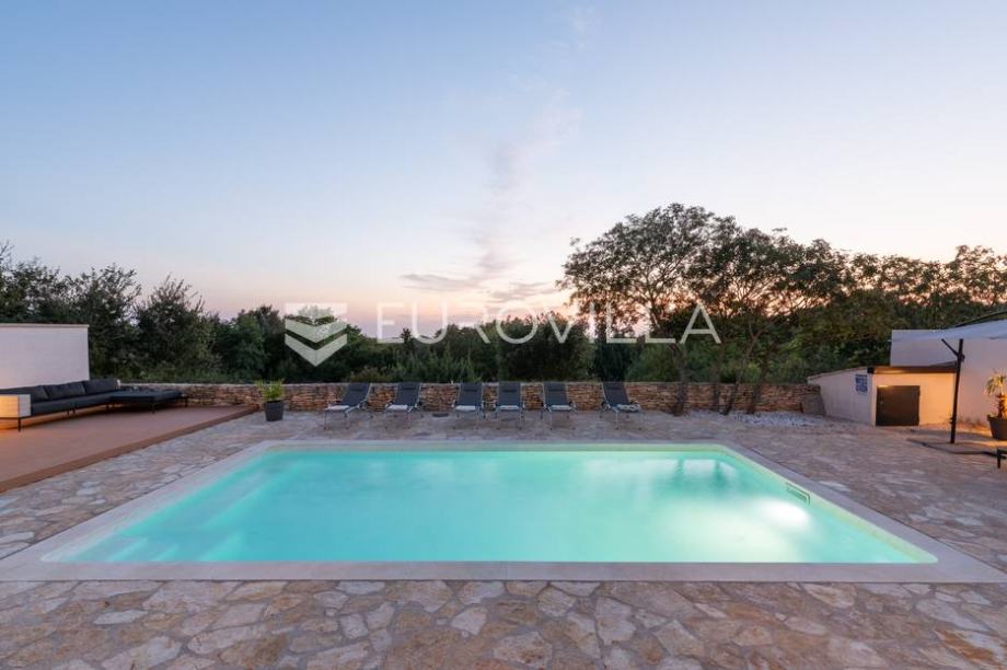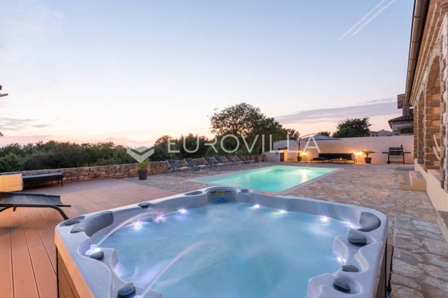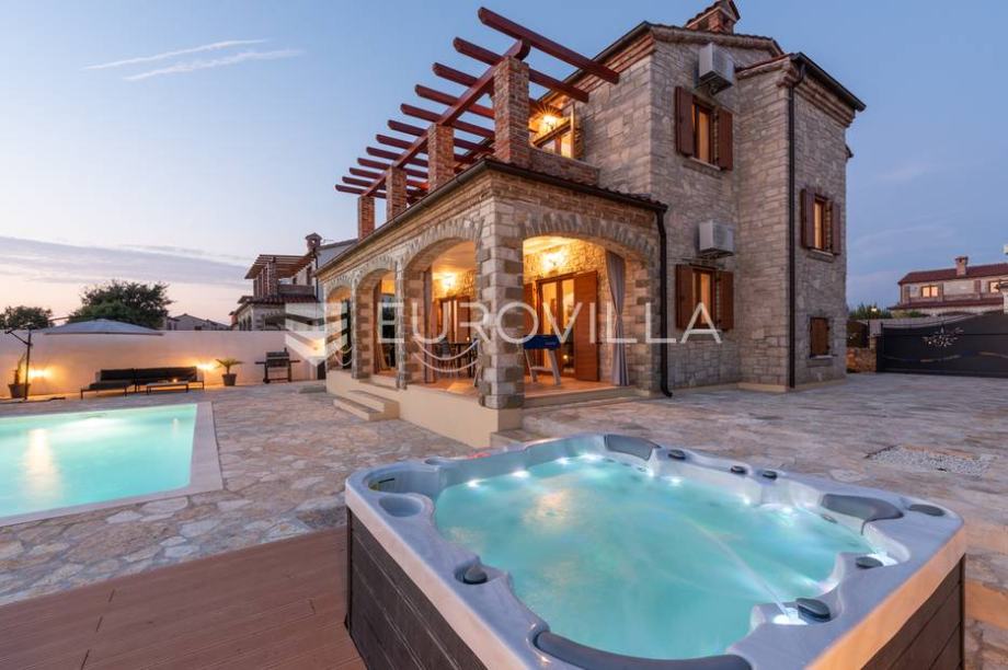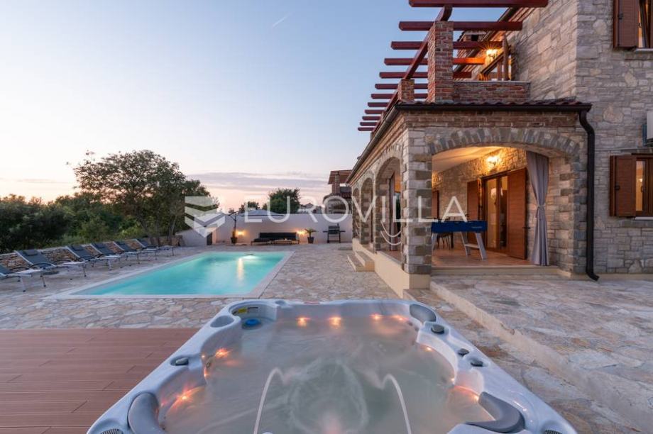For sale is a modern stone house with a swimming pool and jacuzzi, located not far from Svetvinčent itself, in a quieter location, away from the main roads and surrounded by greenery and peace. The house has an area of 155 m2, located on a 538 m2 garden. It consists of a ground floor and a first...