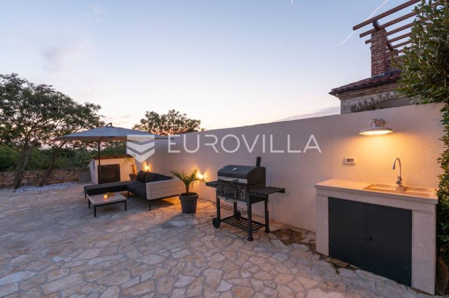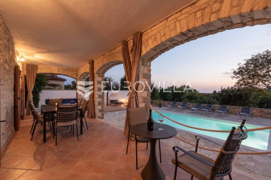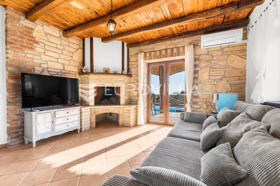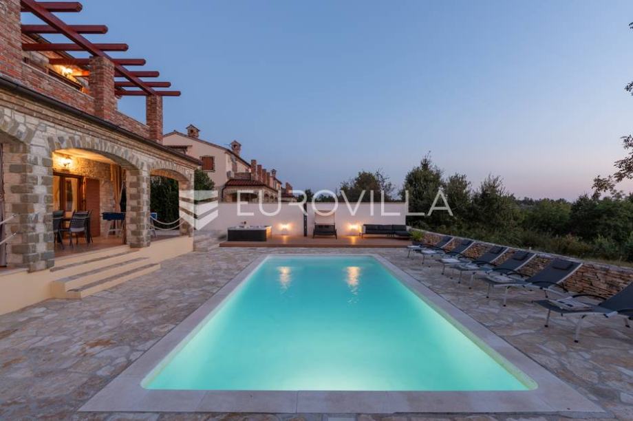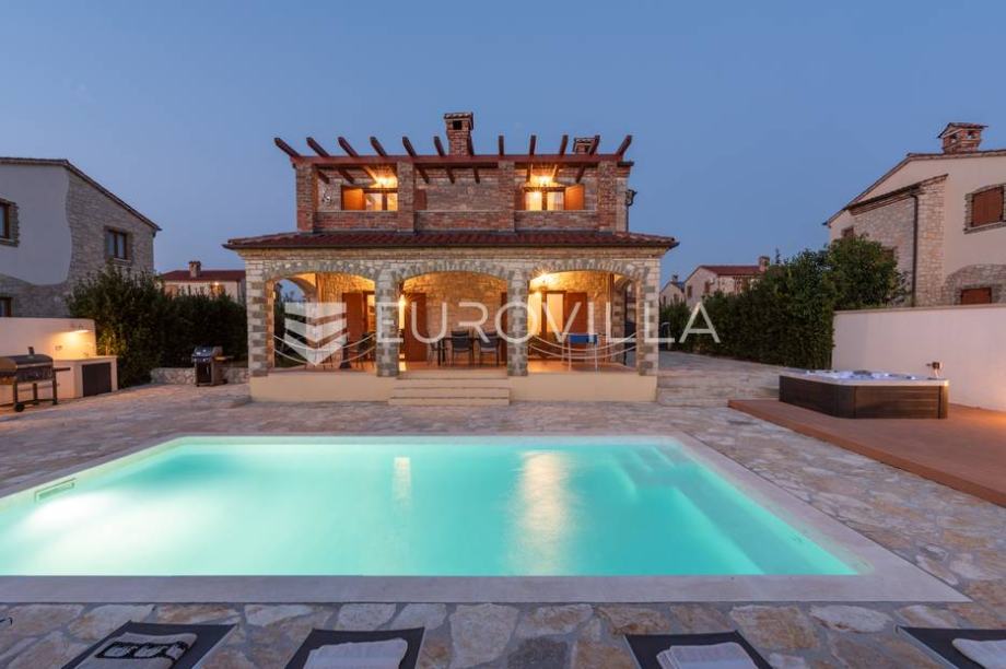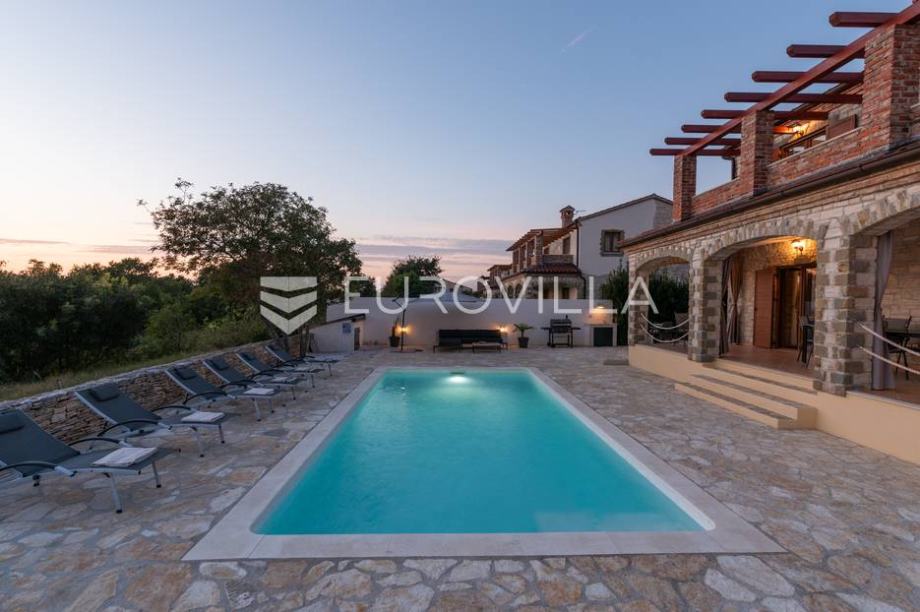 For sale is a modern stone house with a swimming pool and jacuzzi, located not far from Svetvinčent itself, in a quieter location, away from the main roads and surrounded by greenery and peace. The house has an area of 155 m2, located on a 538 m2 garden. It consists of a ground floor and a first...