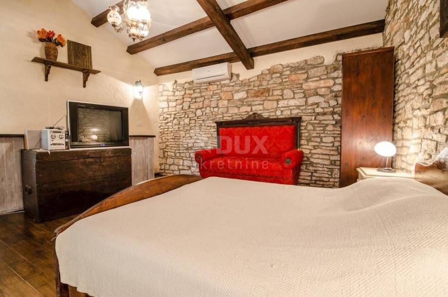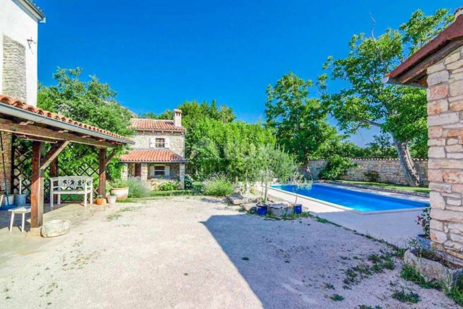 Kuća na prodaju smjestila se u središtu Istre, u mjestu nedaleko Svetvinčenta poznatog po kaštelu i mnogim drugim zanimljivostima. Na prodaji su 3 kamene kuće koje se nalaze na parceli površine 750 m2. Prvi objekt se prostire na 3 etaže i to prizemlje, prvi i drugi kat. Drugi i teći objekt imaju zajednički ulaz u dvorište. Drugi objekt je mala prizemnica koja ima 1 spavaću sobu, kuhinju s blagovaonicom i kupaonicu, dok treći objekt se sastoji od prizemlja i prvog kata. U prizemlju je dnevni boravak, kuhinja i blagovaonica, kupaonica, dok na katu je jedna spavaća soba. U sredini dvorišta je bazen površine 8 x 4 m. Grijanje u kući je moguće pomoću klima uređaja i peći na drva ili pelete. Dva objekta se iznajmljuju, te imaju ugovor s agencijom "puno za prazno" s toga je ovo idealna nekretnina za osobe koje se žele baviti turizmom i preuzeti uhodan posao, a isto tako u trećem objektu mogu živjeti ili iznajmiti s toga je povrat investicije osiguran.