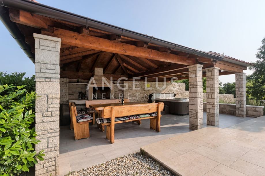 - Natkrivena terasa (36 m²) s pogledom na bazen i vanjski kamin