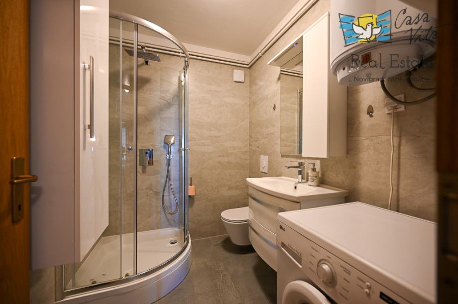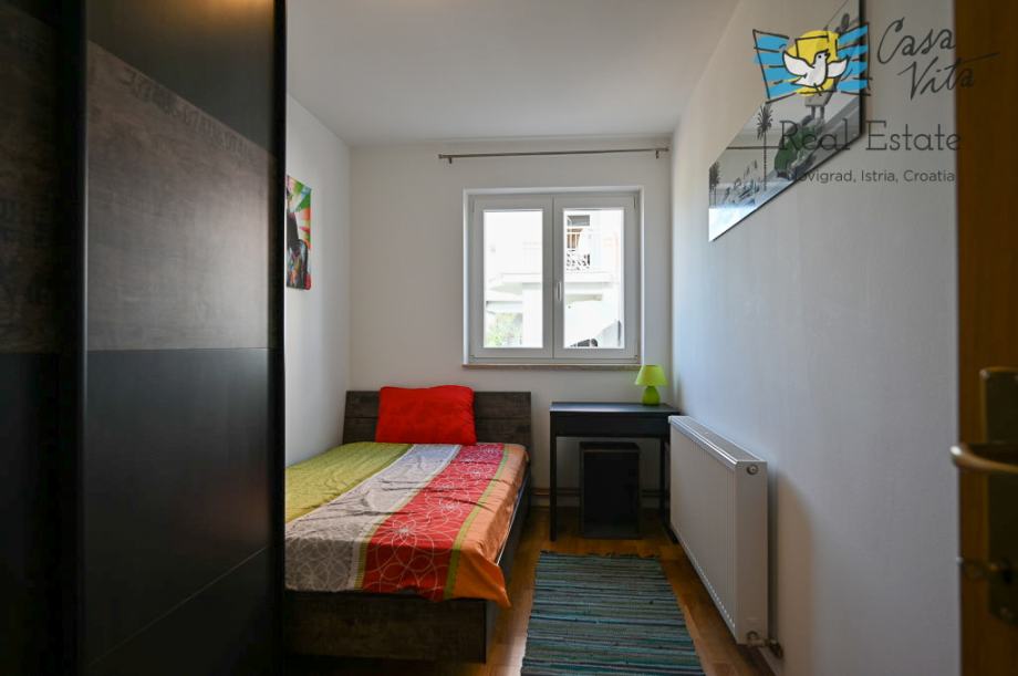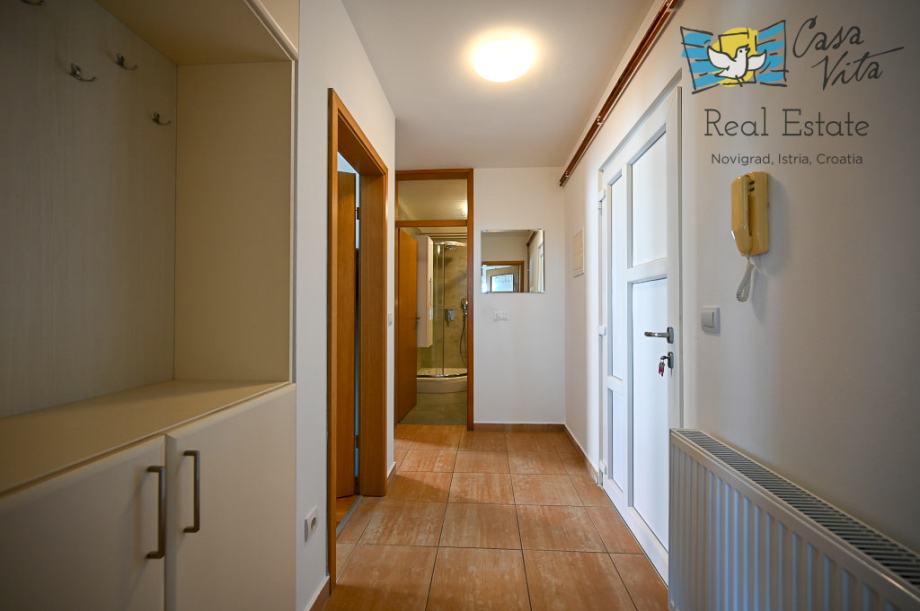 U sklopu opreme nalazi se kompletno opremljena kuhinja s aparatima, perilica posuđa, perilica rublja, TV te kreveti i ormari, što olakšava useljenje i svakodnevni život. Grijanje i hlađenje su riješeni centralnim grijanjem, dizalicom topline te klima uređajem.