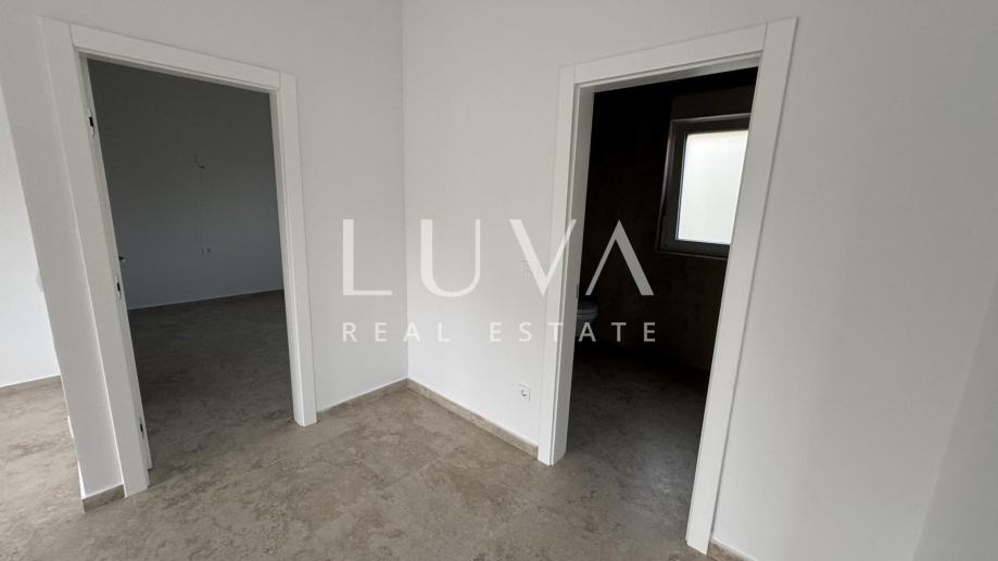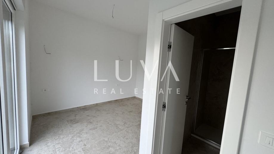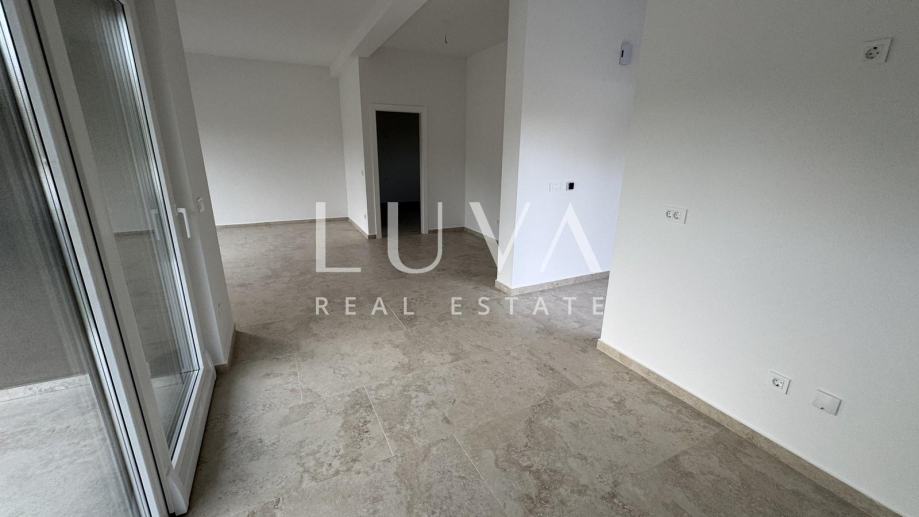 Iz dnevnog boravka i jedne spavaće sobe izlazi se na veću terasu, dok kuhinja ima pristup manjoj terasi, pružajući ugodne prostore za boravak na otvorenom. Stan ima prostranu okućnicu s dva pripadajuća parkirna mjesta.
