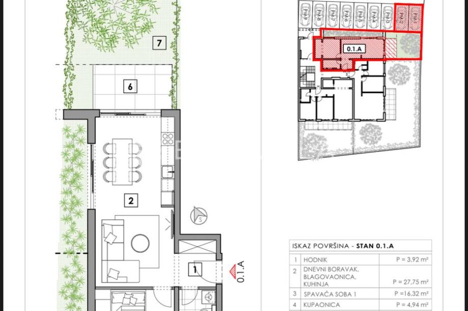 Istra, Tar, na prodaju je elegantan jednosoban stan smješten u prizemlju zgrade B, koja je dio modernog stambenog projekta s dvije zgrade i ukupno 16 stanova vrhunske kvalitete.Stan oznake 0.1.B ukupne obračunske površine 71,50 m² nudi 58,18 m² zatvorenog stambenog prostora, a sastoji se od hodnika, prostranog dnevnog boravka s kuhinjom i blagovaonicom, jedne udobne spavaće sobe te kupaonice. Dodatnu vrijednost stanu daje natkrivena terasa od 6,30 m² koja se nadovezuje na privatni vrt površine 51,68 m² - idealan za opuštanje, druženja ili vrtlarenje. Uz stan dolaze i dva parkirna mjesta, uključena u cijenu.Stan je pažljivo osmišljen kako bi pružio funkcionalan raspored i ugodan životni ambijent, uz obilje dnevnog svjetla i direktnu povezanost unutarnjih i vanjskih prostora.Zgrada je građena prema najvišim standardima - fasadni sustav Caparol s 14 cm termoizolacije, PVC prozori s troslojnim staklima i komarnicima, te Mitsubishi Multi-Split sustav grijanja i hlađenja osiguravaju cjelogodišnji komfor. U interijerima su korišteni vrhunski materijali - talijanska keramika Florim i parket prve klase, a kupci imaju mogućnost izbora završne obrade po vlastitim željama.Stan je opremljen video portafonom, internet i telefonskim priključkom, te satelitskim sustavom. Zgrada posjeduje lift koji povezuje sve etaže s podrumom u kojem se nalazi i pripadajuće spremište.Završetak radova predviđen je za svibanj 2026. godine, a budući da se stan prodaje preko tvrtke, kupac je oslobođen plaćanja 3% poreza na promet nekretnina.Ova nekretnina idealna je kao prvi dom, mjesto za odmor ili pametna investicija - spoj privatnosti, moderne gradnje i funkcionalnog vanjskog prostora.Za dodatne informacije ili dogovor oko razgleda, slobodno nas kontaktirajte!...Za ovu nekretninu kontaktirajte agenticu na broj telefona +385 98 160 6933.Više na Eurovilla.hr, ID: 189508Direktan link: https://eurovilla.hr/nekretnina/istra-tar-novogradnja-1s-db-vrt-u-centru-grada/189508/-----... For this property contact our agent on telephone number +385 98 160 6933.More on Eurovilla.hr, ID: 189508Direct link: https://eurovilla.hr/en/property/istria-tar-new-building-1-bedroom-living-room-garden-in-the-city-center/189508/...