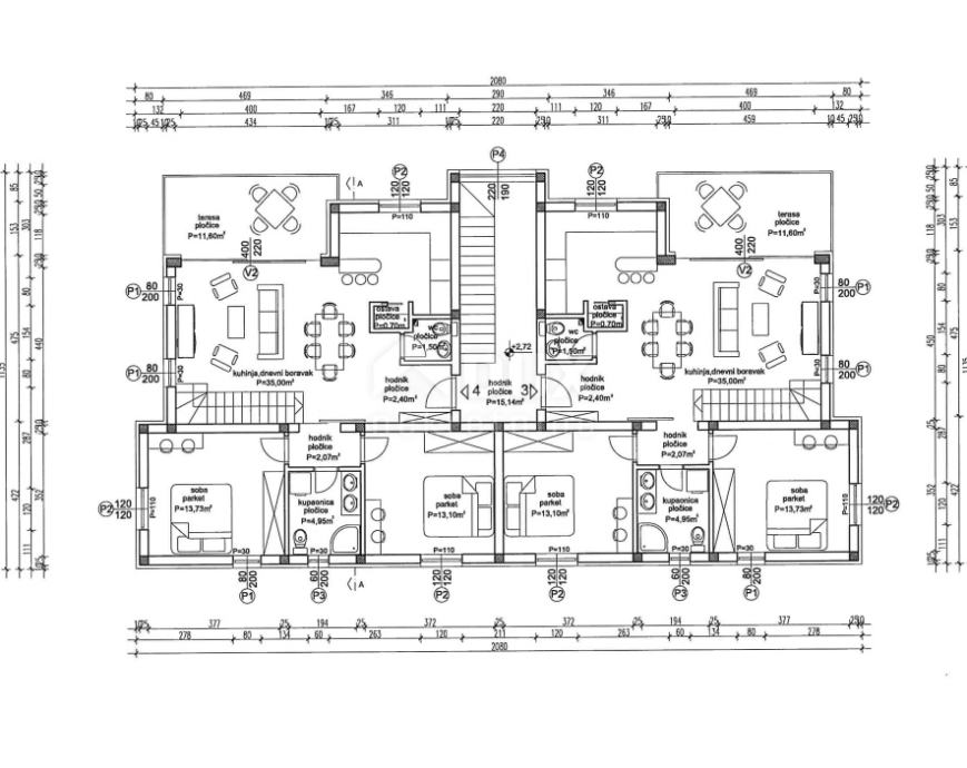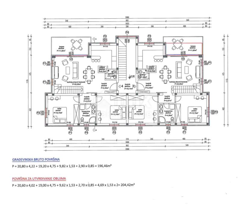 Dva stana, svaki površine 73,45 m2 + terase površine 11,60 m2
