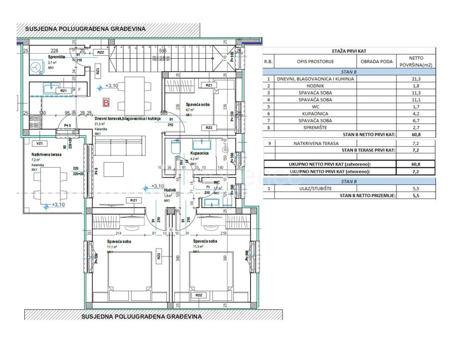 Stanu također pripadaju dva parkirna mjesta ispred zgrade.