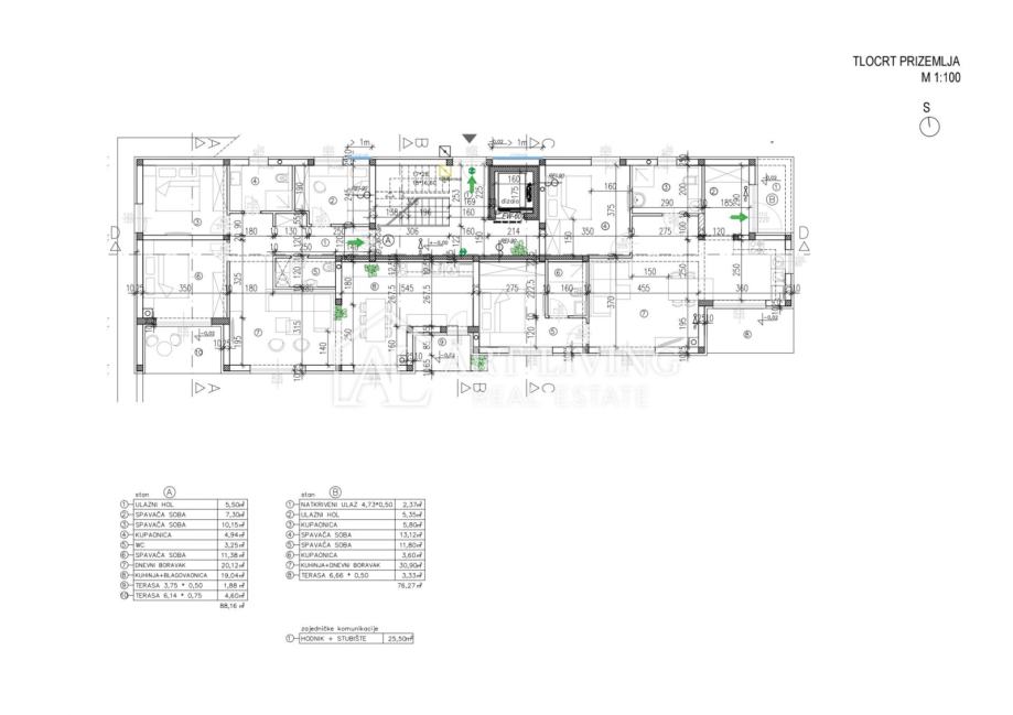 Stan A smješten je u prizemlju zgrade i ukupna kvadratura stana iznosi 88,16 m2.