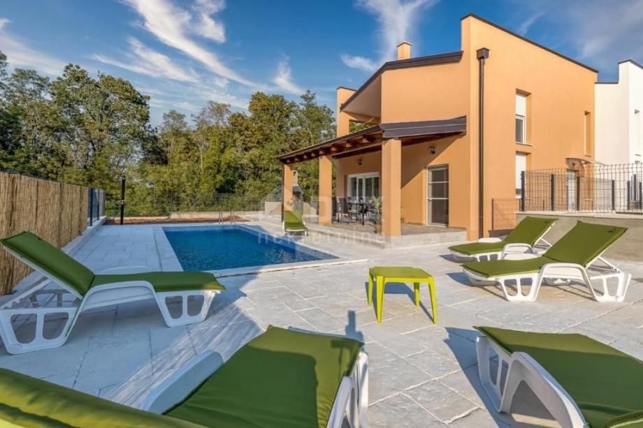 Ponosno predstavljamo ovu kvalitetnu dvojnu kuću smještenu na svega 17 km od poznatog i nezaobilaznog grada Poreča, kao i njegovih uređenih plaža. Kuća se nalazi u manjem i mirnom naselju koje se sastoji većinom od obiteljskih kuća, te nekoliko kuća za odmor.