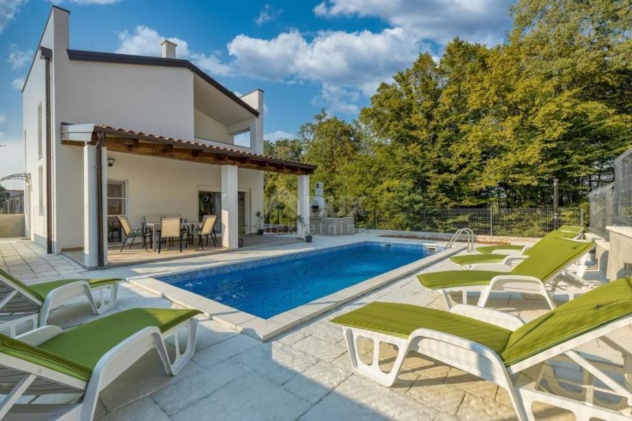 Ponosno predstavljamo ovu kvalitetnu dvojnu kuću smještenu na svega 17 km od poznatog i nezaobilaznog grada Poreča, kao i njegovih uređenih plaža. Kuća se nalazi u manjem i mirnom naselju koje se sastoji većinom od obiteljskih kuća, te nekoliko kuća za odmor.