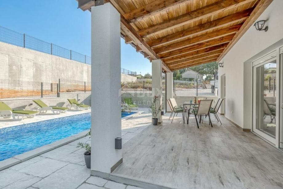 Okućnica kuće od komotnih 353m2, u potpunosti ograđena te uređena na način kako bi održavanje bilo što jednostavnije. Centralni dio dvorišta ipak zauzima bazen sa sunčalištem, a okućnica posjeduje i dovoljno prostora za opuštanje i zabavu. Na okućnici su se jednako tako nalaze i dva parking mjesta za vaše limene ljubimce.