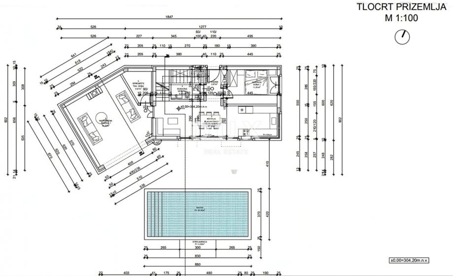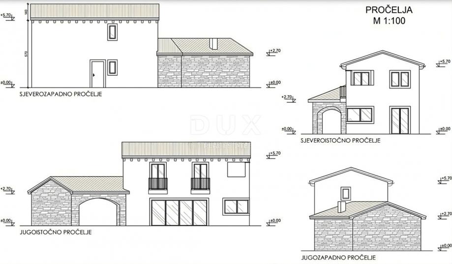 Kuća bezvremenskog dizajna se oblikovno i koloristički uklopa u naselje i krajolik a koncipirana je kao jedna stambena jedinica koja se proteže kroz dvije ukusno uređene i kvalitetno opremljene etaže.