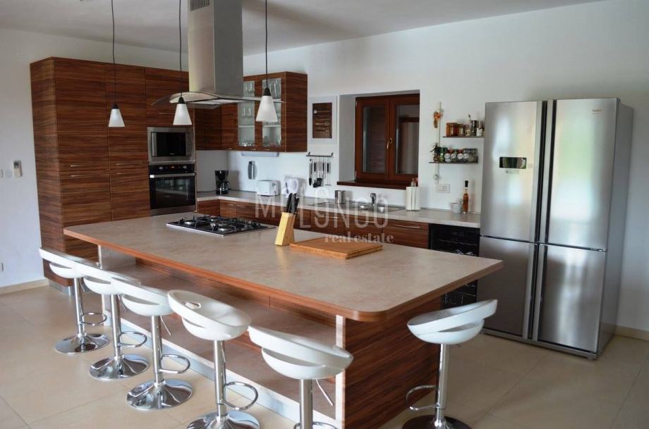 Villa modernim izdanjem osvaja svojim vanjskim i unutarnjim izgledom. Ekskluzivan i ugodan ambijent sastoji se od moderno opremljene kuhinje sa prostranim otokom i blagovaonom, te dnevnog boravka koji je osvijetljen dnevnim svjetlom. Nekretnina sadrži i tri iznimno prostrane spavaće sobe sa kupaonicama i WC-om.