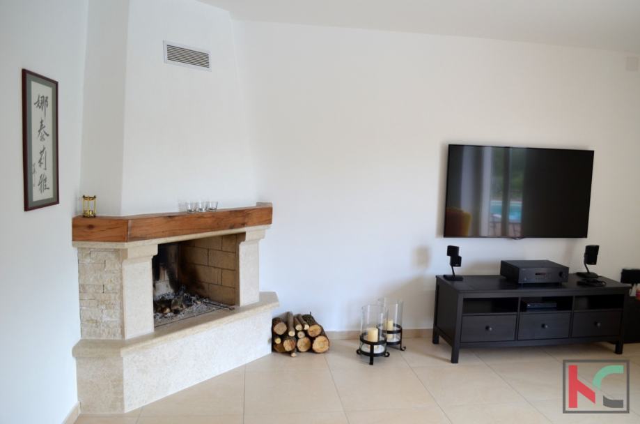 Kuća je opremljena alarmnim sustavom, podnim grijanjem (osim u spavaćim sobama), 5 klimatskih jedinica, a za dodatan ugođaj u dnevnom boravku nalazi se kamin.