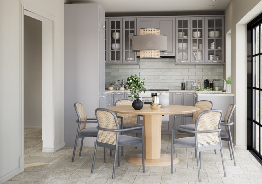 Tako se u prizemlju vile nalazi ulazno predvorje koje nas dočekuje i dalje vodi prema dnevnome prostoru koncipiranome kao otvoreni prostor bez pregradnih zidova. Ovdje je planirana postava većeg i komotnog dnevnoga boravka uz kamin na drva i klizna staklena stijenka kroz koju se proteže pristup i pogled prema okućnici i bazenu. Pored dnevnog boravka, blago izdvojenom se nalazi prostor za kuhinju s prostranom blagovaonom, iz koje se jednako tako kroz staklenu stijenku proteže izlaz prema natkrivenoj terasi.
